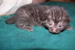 Renowned for their loyal dog-like behaviors, these cats are naturally spotted and occur in silver, bronze, smoke, black, and blue/pewter with a distinctive spot pattern. Black and blue/pewter are not eligible for show but are acceptable for breeding and registration. Eyes are “Gooseberry green” and have a distinctive “M” pattern on their forehead. Their voices are melodic, almost a ringing sound. They are extremely docile and outgoing with strangers in general.