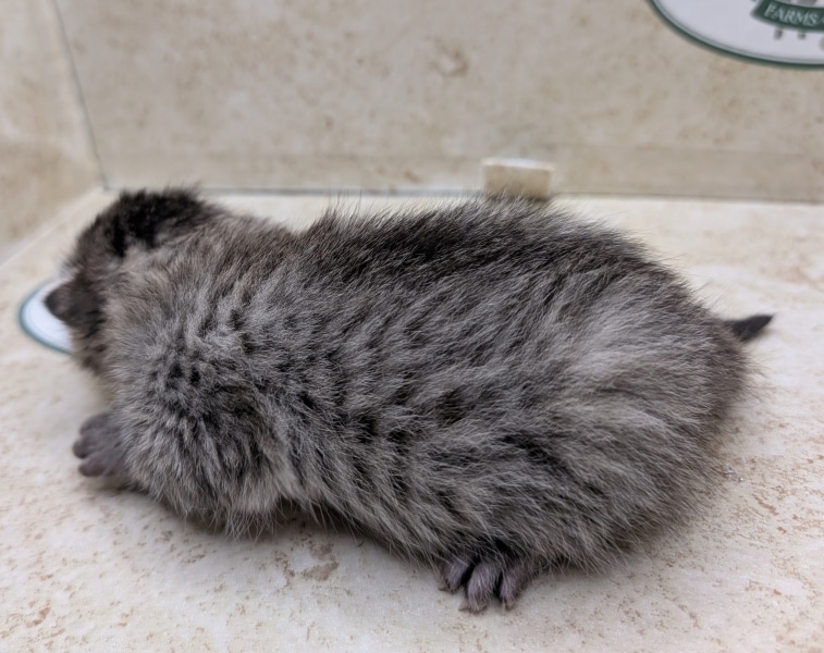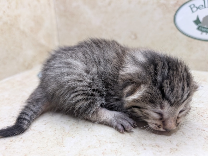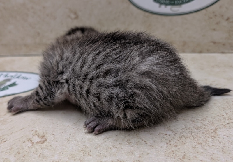 This sweet little Bronze Egyptian Mau will grow to be someone's perfect and beloved pet. Bronze Maus have become rare in the US market and thanks to a generous breeder who imported some new bloodlines we are able to offer these natural colored kittens once again. This boy will develop more brown/bronze shades as he grows a little more and loses his fuzzy kitten coat. He will be going home to Chris and Family on AL
