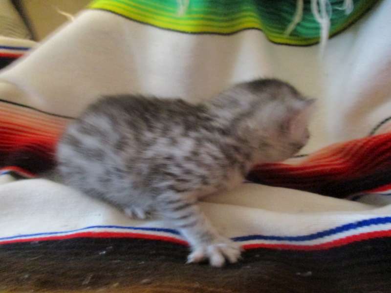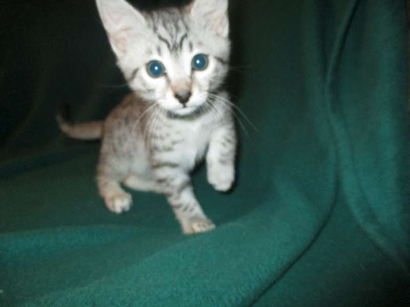 Egyptian Mau, Cool Bronze Male DOB 3-10-18This beautiful little boy Mau will but a stunning adult. A very cool Bronze at this time he should have good contrast for his spots and be wonderful pet for Elaina in TX. [Show slideshow]1 2 ►