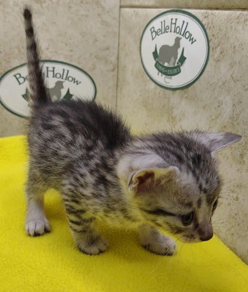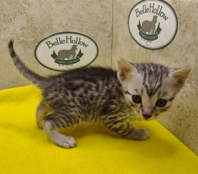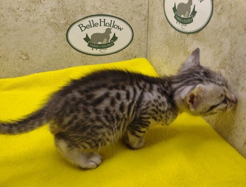 Just too sweet! This little Egyptian Mau boy is just slighty lighter than his brothers and will be shiny like a new dime. Like all Maus he will be a loving and devoted companion to some lucky owner of family. He will be going to live with Nikki snd her fiancee in NY.
