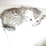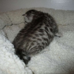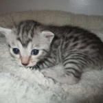 Egyptian Mau, Silver, Female, DOB 7-26-17This angelic little face will grow to be the beloved pet and exotic looking companion you have dreamed of. She is going to live with Katelyn and her Fiancee in NC [Show slideshow]1 2 ►