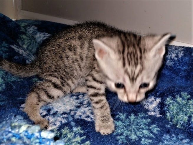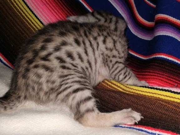 Egyptian Mau SIlver male #1 DOB 2-14-19Shiny and new this little mau boy will make a fabulous pet. Beautifully spotted he has all the attributes one looks for in a Mau. He will be going home to Kasey in MN. [Show slideshow]1 2 ►
