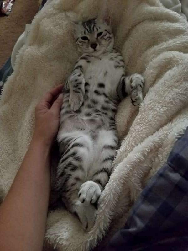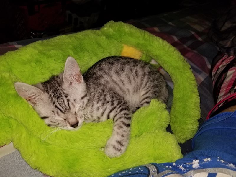 Savannah, a wonderful little girl Mau is not sure if she wishes to be Silver or Bronze but either way she will make a fabulous and beautifully spotted loving pet. for Amie in TN.