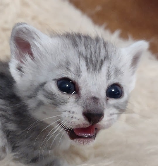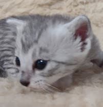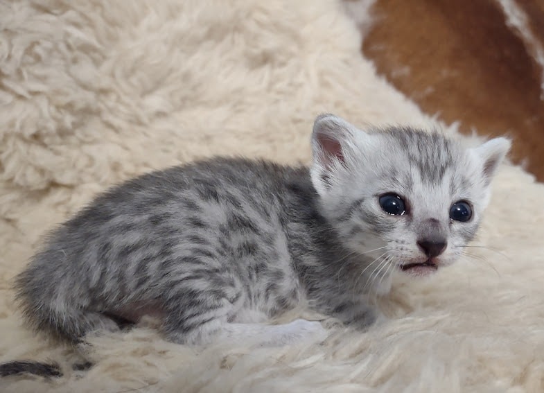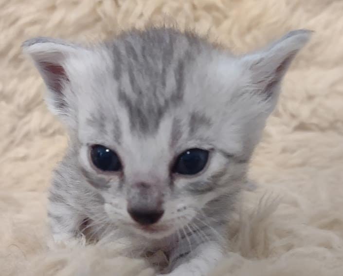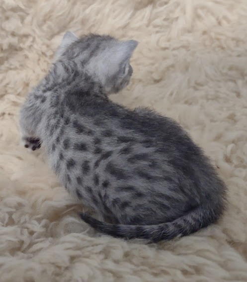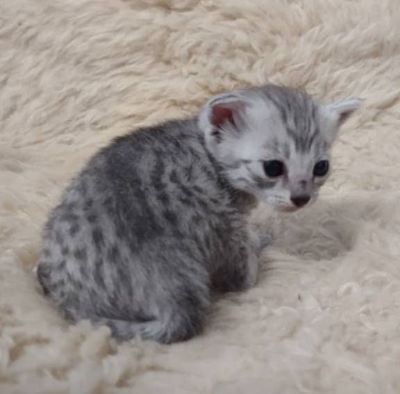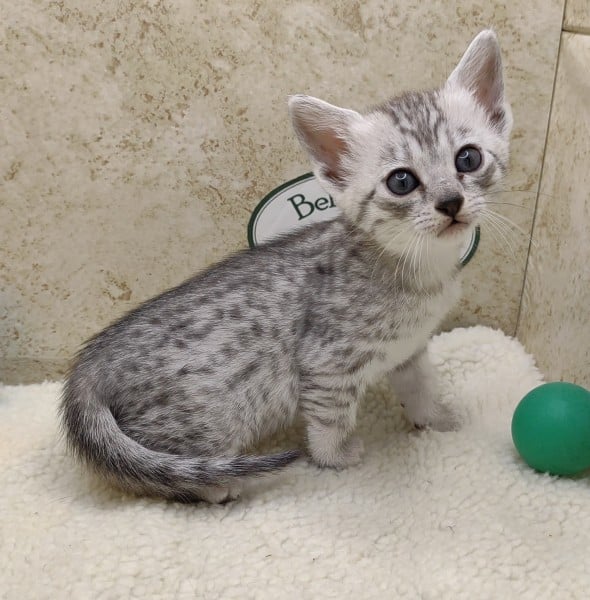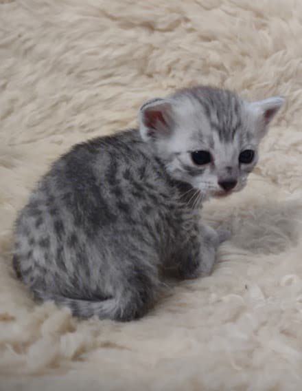 Mau Silver female DOB 2-21-23This sweet silver Egyptian Mau girl will make a loving and devoted pet to Joe and Family in PA. [Show slideshow]1 2 ►