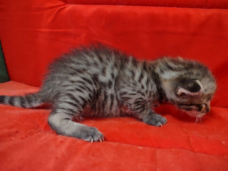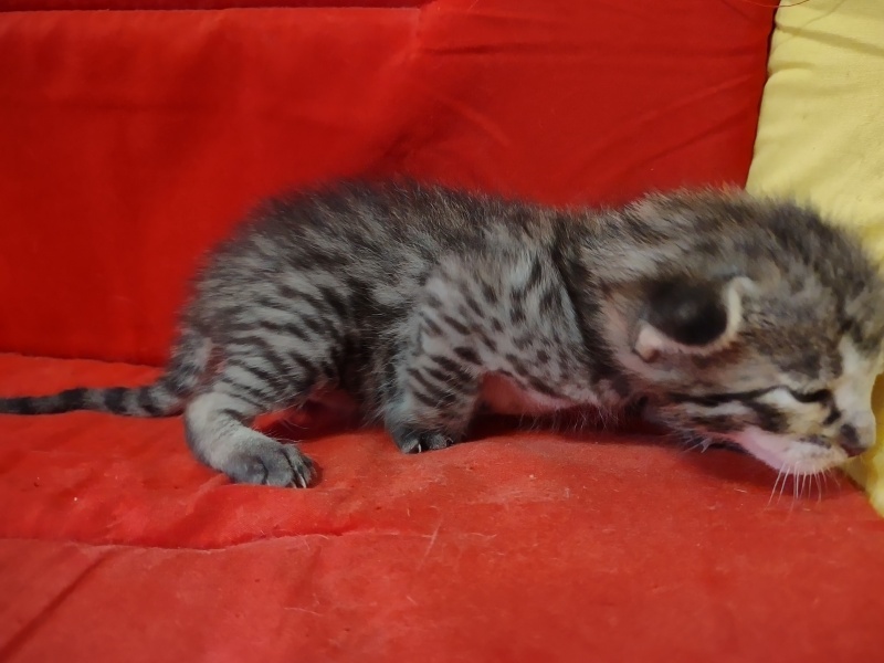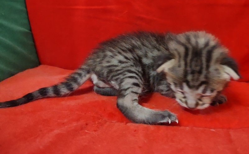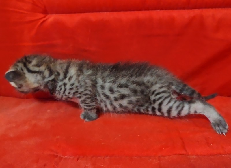 Savannah F-3C Male #1 DOB 10-21-23Currently the largest of his litter this cool brown spotted F-3C boy will make an exceptional pet sure to catch everyone's eye! He will be going home to Kristie in CA and be joining 2 other Belle Hollow Savannahs [Show slideshow]