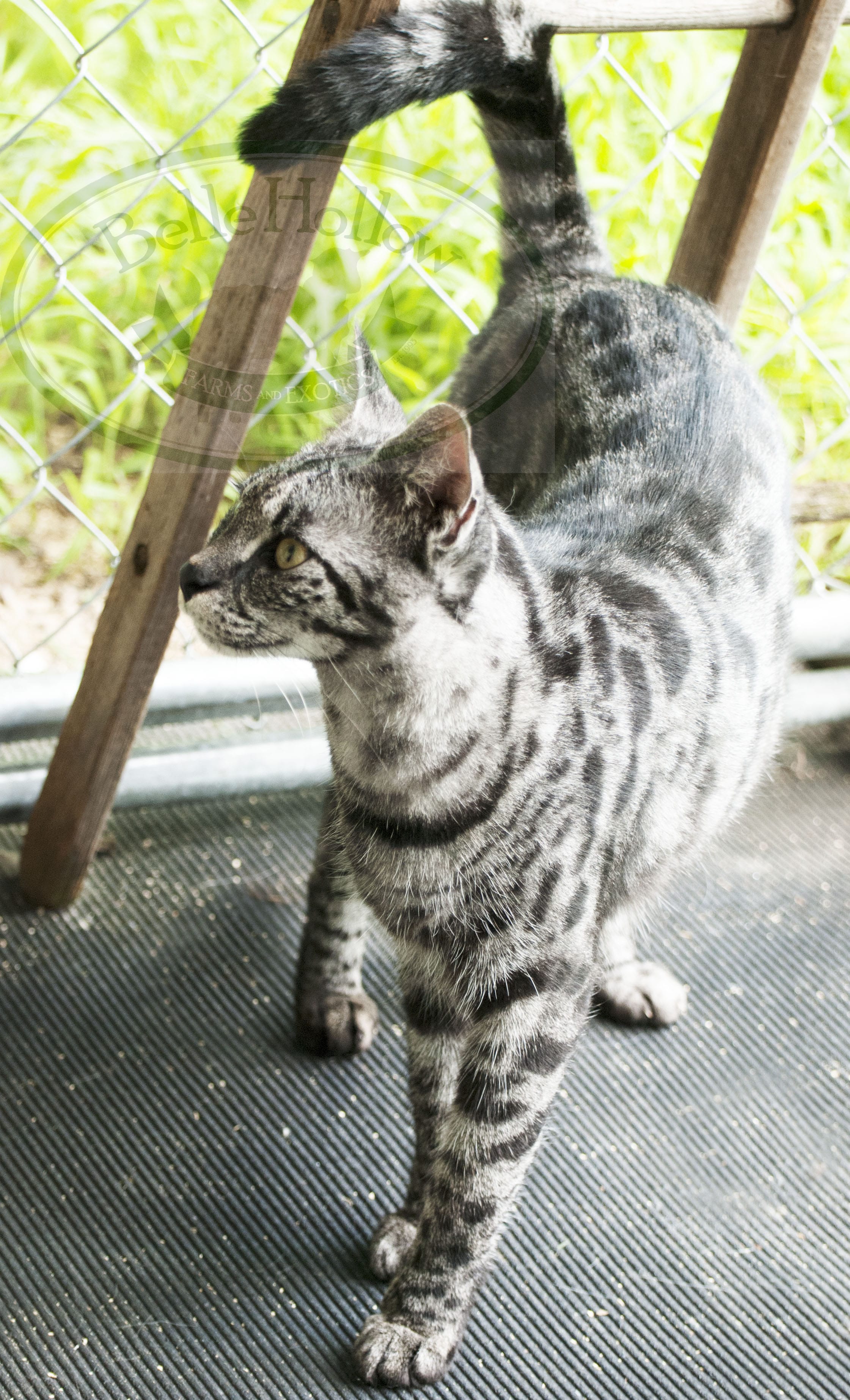 Maturing to a whopping 5 pounds,Geoffroy’s Cats are an endangered species, C.I.T.E.S. Appendix 1, and not legal to own everywhere. She is offered legally as we have our USDA license to breed this species. She is available to an approved home and is priced at $3,000.
