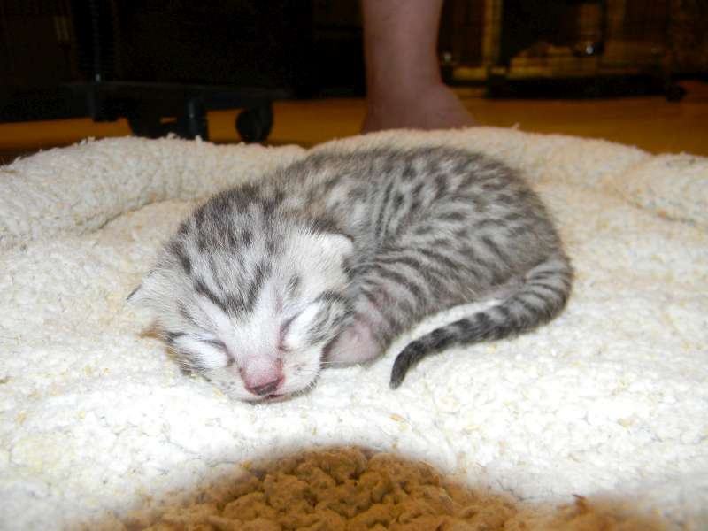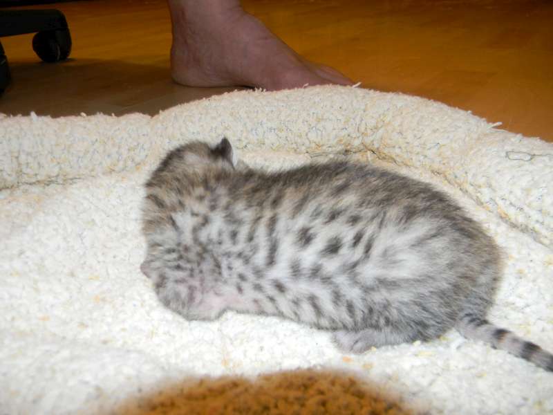 Segue F-1 Savannah Male just after arriving home with Mike at 8 weeks
