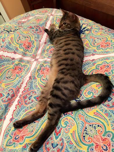 He is the most mischievous cat I’ve ever had, he is constantly looking, sticking his nose in, touching, whatever it takes to get his self into the middle of whatever is going on. And he only wants to do what he knows he is not supposed to do. As soon as I sit down at the table for dinner he jumps up in my husband’s chair and lays down so that Terry has to run him off. As soon as I get in on my side of the bed he jumps up onto Terry’s side of the bed and lays down. Of course Terry thinks Horus has some kind of master plan to push him out (which could be true) but it is a constant battle between the two of them. I think it is funny.