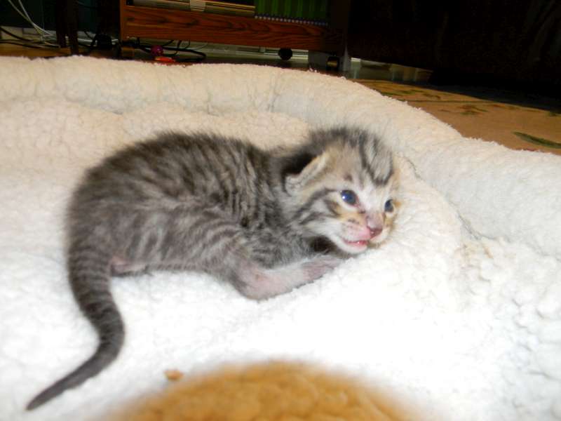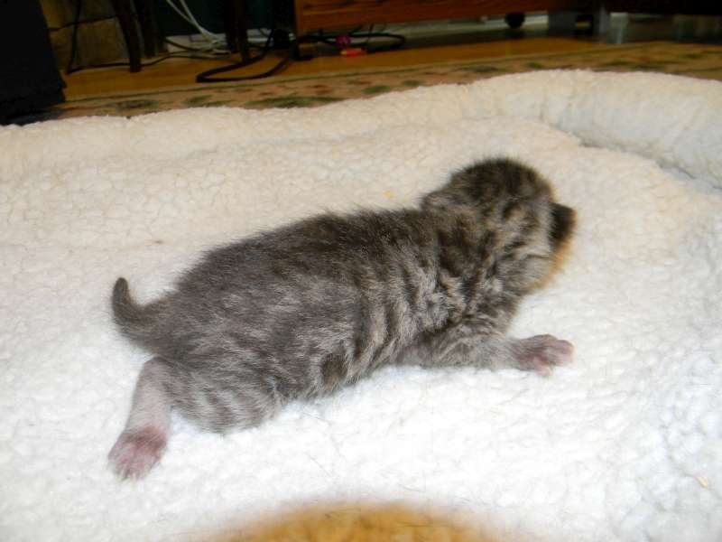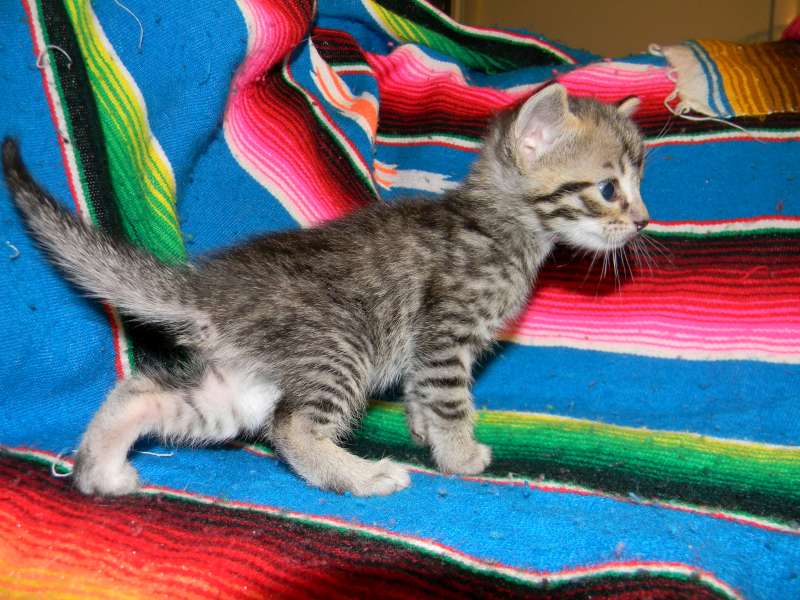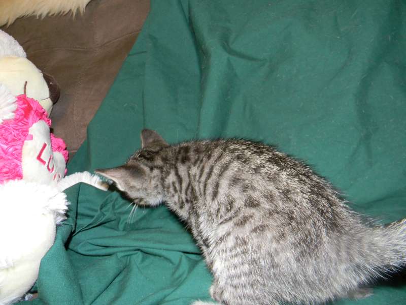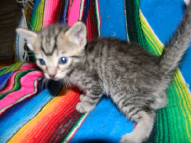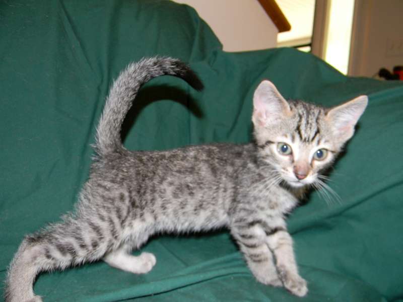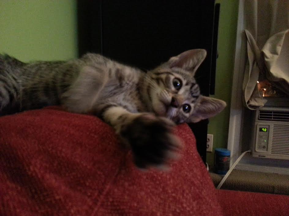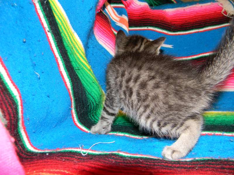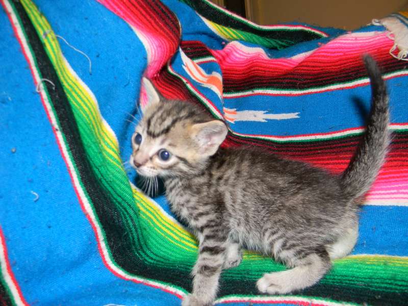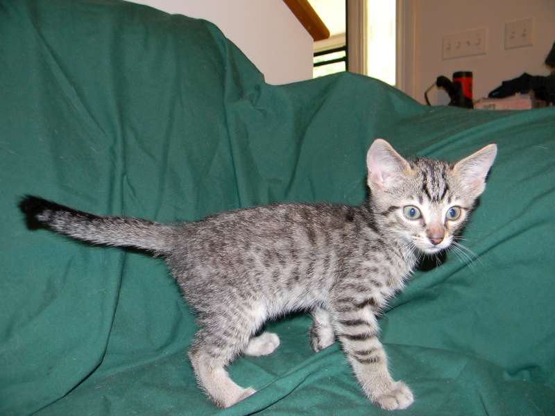 I think we bonded instantly once I got him home and calmed down a bit. We laid down and nuzzled each other in my hammock for a while, and he hasn't stopped purring since. He's now tearing all over my apartment, and even walking on the keyboard as I'm trying to type this. What a little monster. I'd get a picture taken for you, but he won't sit still long enough for me to focus! Don't worry... as soon as I get some good ones, I'll send them right on to you.