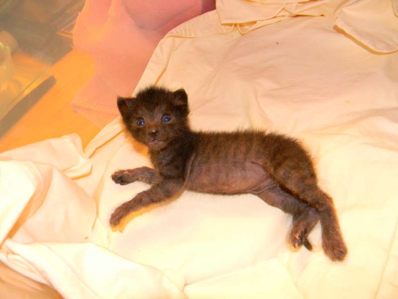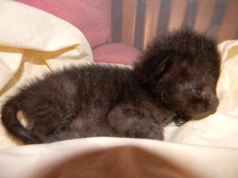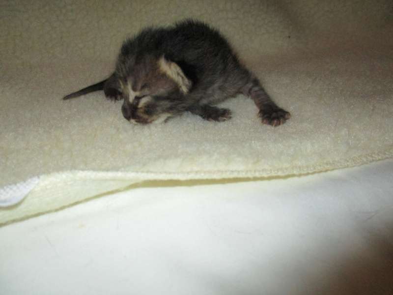 It is amazing how fast this kitten is growing. He is sitting up at less than 2 weeks.