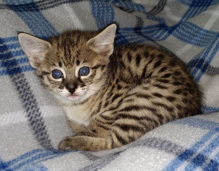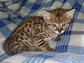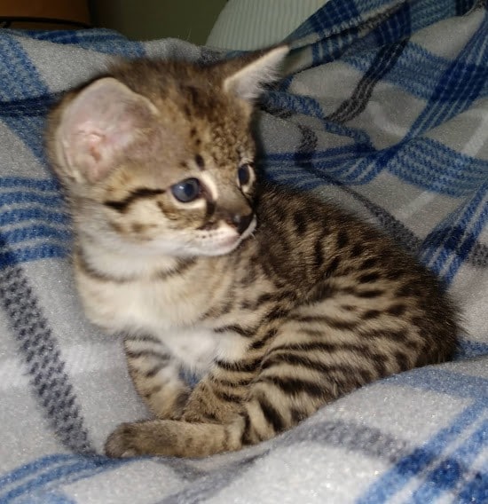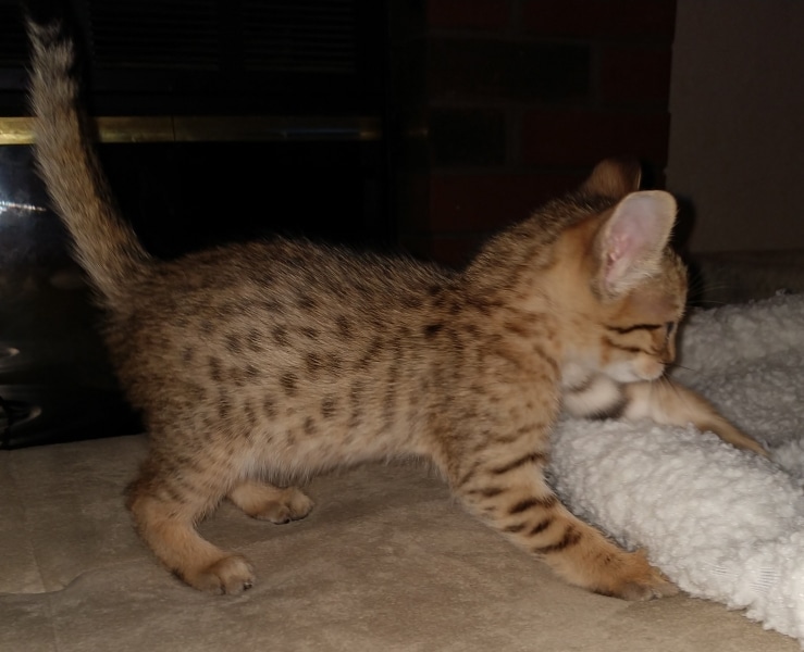 This long lean F-2 savannah guy is the fastest growing kitten I have ever had.
