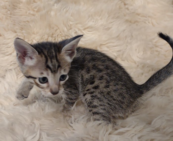 Images tagged "f6" Just to cute! this little F-6 male golden/black spotted savannah is looking for his forever home Clearly spotted and golden colored this little guy is as stunning as many early generation cats. Too Cute And he is still too precious for words. [Show slideshow]1 2 ... 23 ►