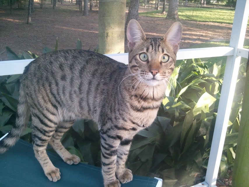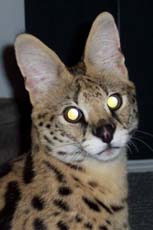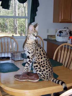 Truffles, F-5 SBT savannah, shown here at 10 months. He is a big boy with great ears for a later generation cat.
