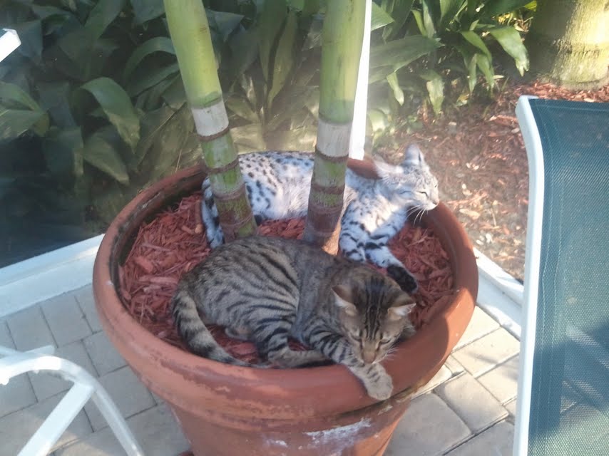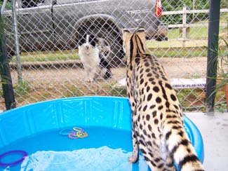 Truffles shown here with Sheikra F-2 savannah female has great potential. He is long and lean and 10 pounds at 10 months