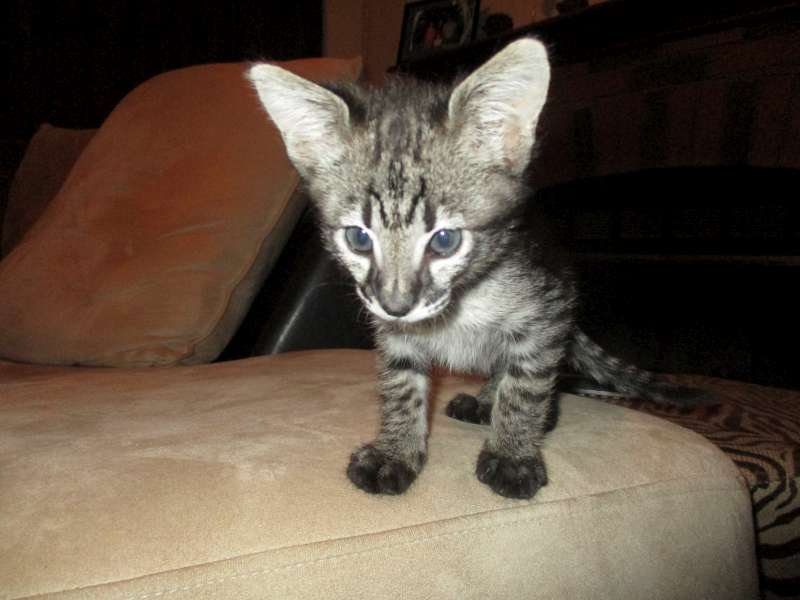Merlin, Savannah, F-2B, Male, Brown black) spotted DOB 9-25-17