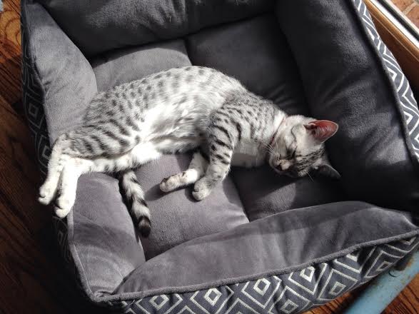 Silkie is doing great. First time I found her sleeping in this bed. Guess she could not resist the sun.