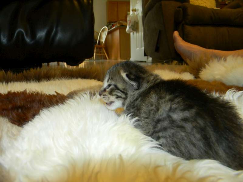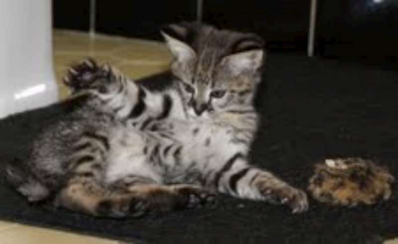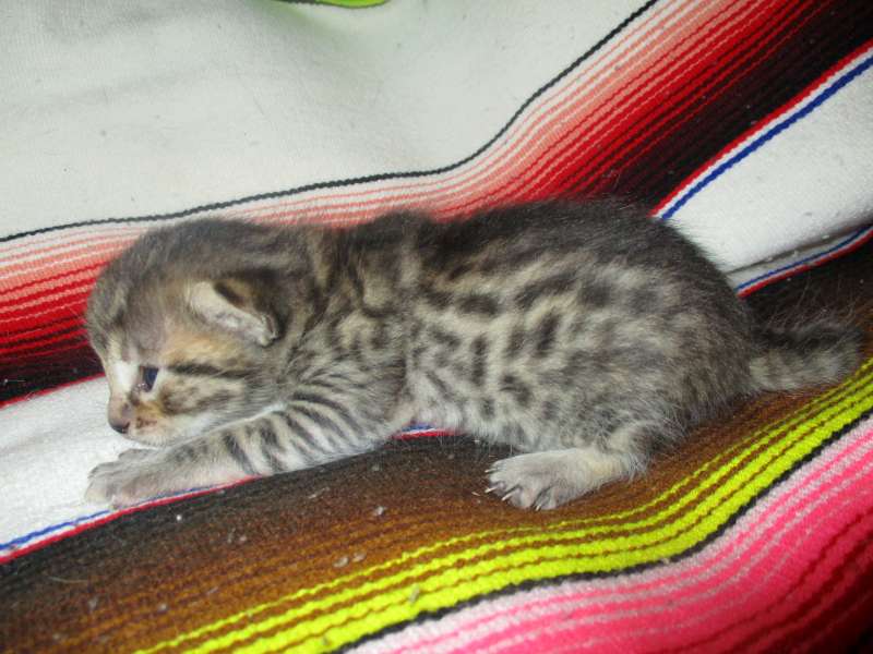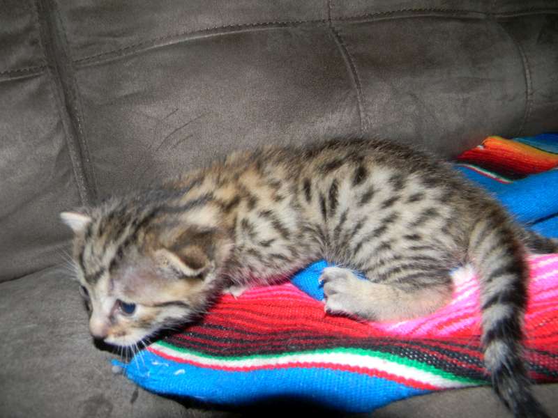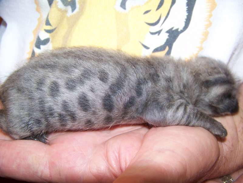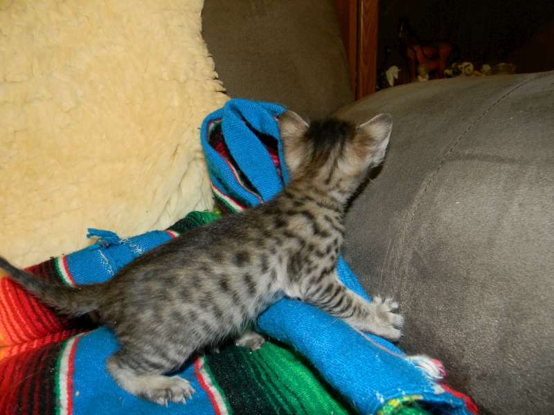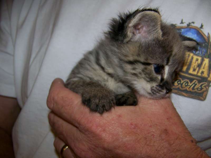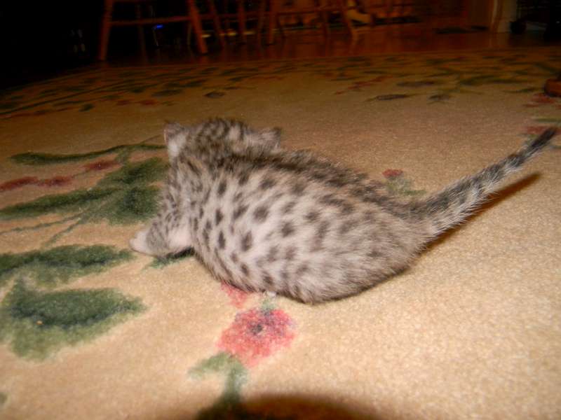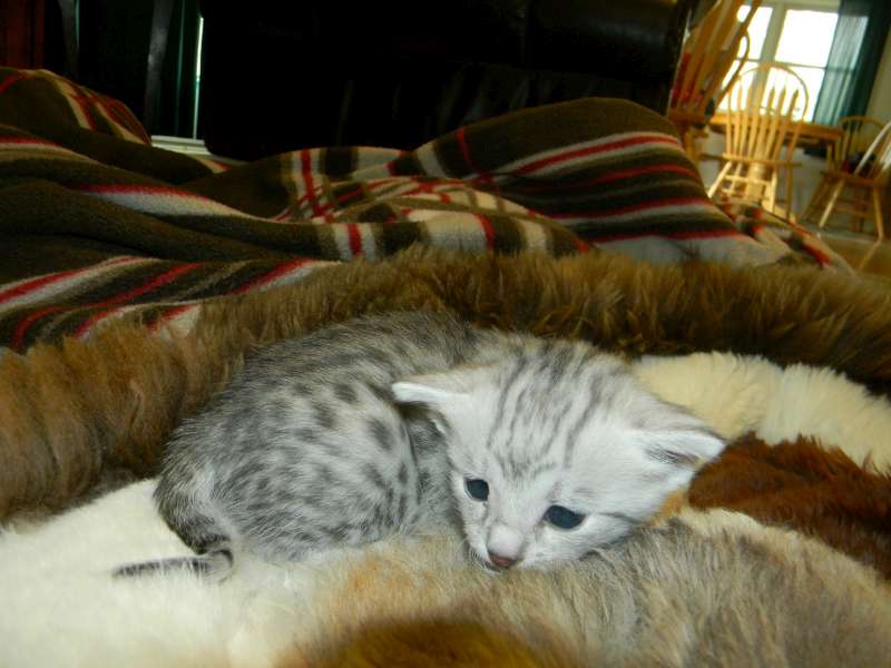 Segue F-1 Savannah Male just after arriving home with Mike at 8 weeks