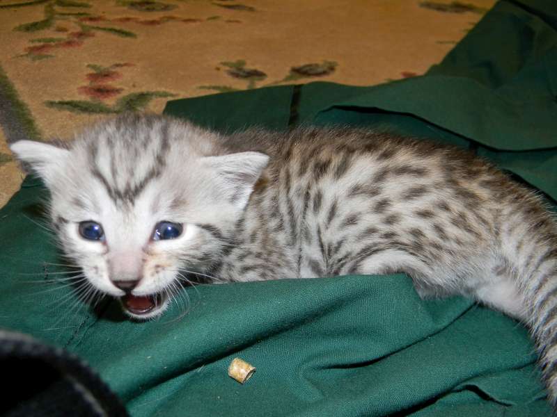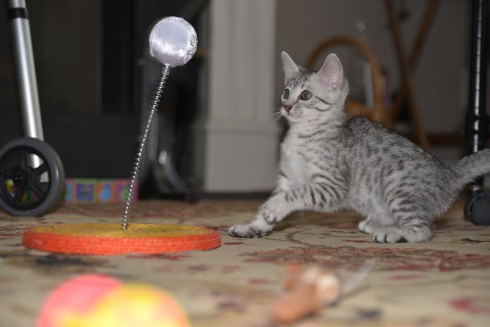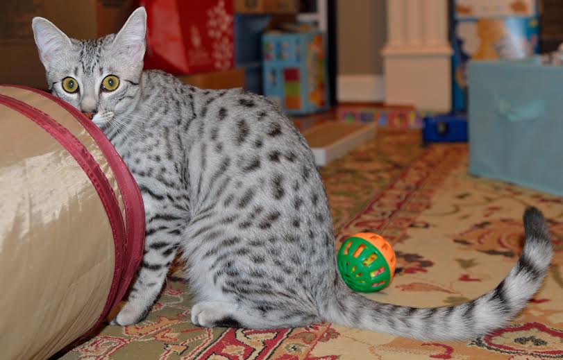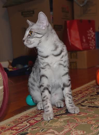 Images tagged "silver-mau" Silkie and Tom slept through the Panthers Game This is where all her toys end up! Jasmine and her friend check out Jasmine's first Christmas Tree! Who can resist a new born kitten? Silkie is entertainment. She loves to climb. I just can't help but see the word "HELP" in his eyes What a precious angel! So tiny not but this little Mau is growing fast. Sooo Cuddly! My new Mommy and Daddy came to visit me today. Now 5 weeks this little silver mau boy is exploring his world This little mau has beautiful spots. There is always something to play with when your this little. Gotta love this little silver Egyptian Mau. So tiny now this little silver egyptian mau will grow into a stunning adult. Another beautiful little painted egyptian mau face starting to get moving this little guy is just precious. How can anyone resist this beautiful silver mau boy. Bigger now but still so innocent this little Mau will steal his new parents heart. Still tiny and cuddy, little Isis, egyptian mau girl, is growing well. [Show slideshow]1 2 ... 11 ►