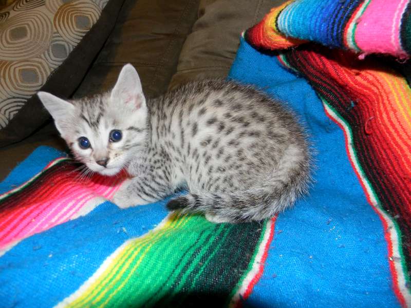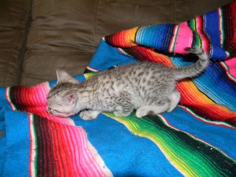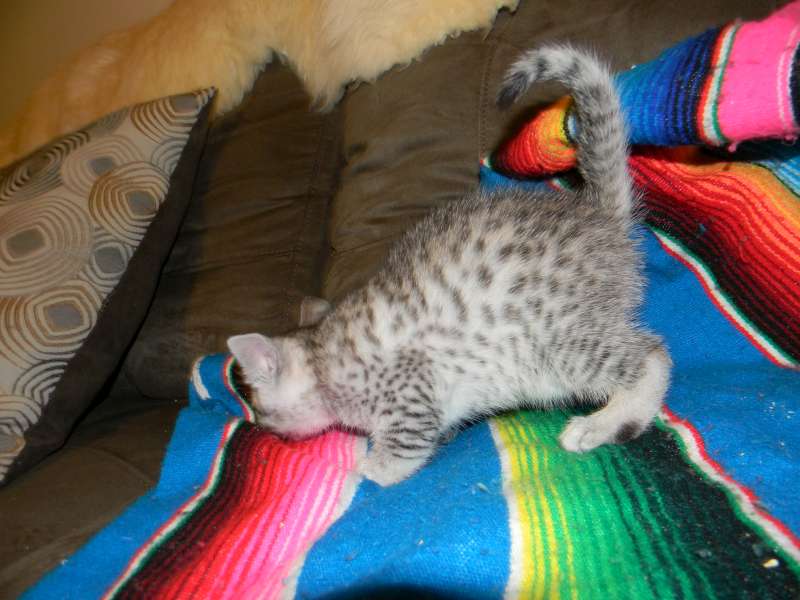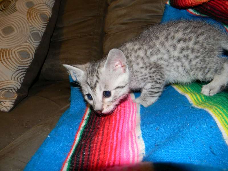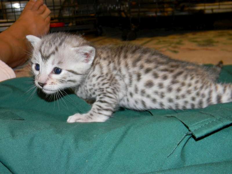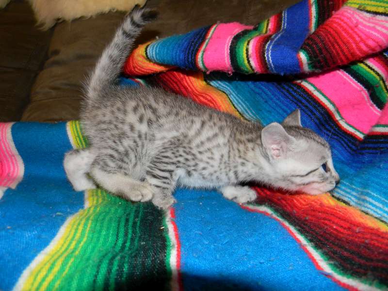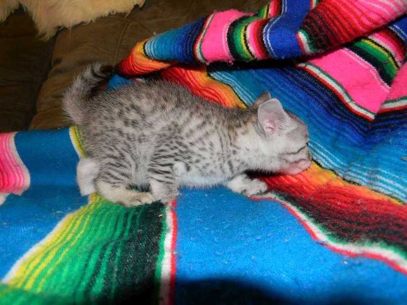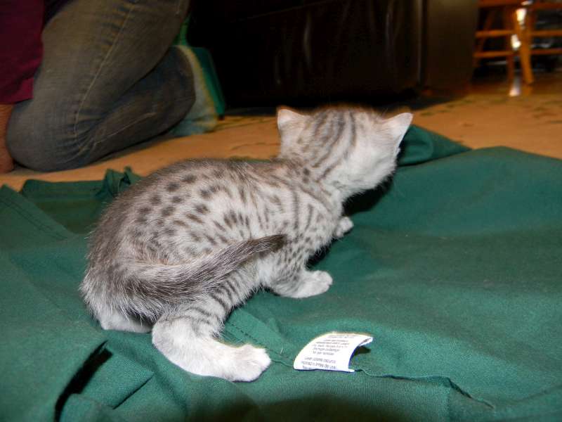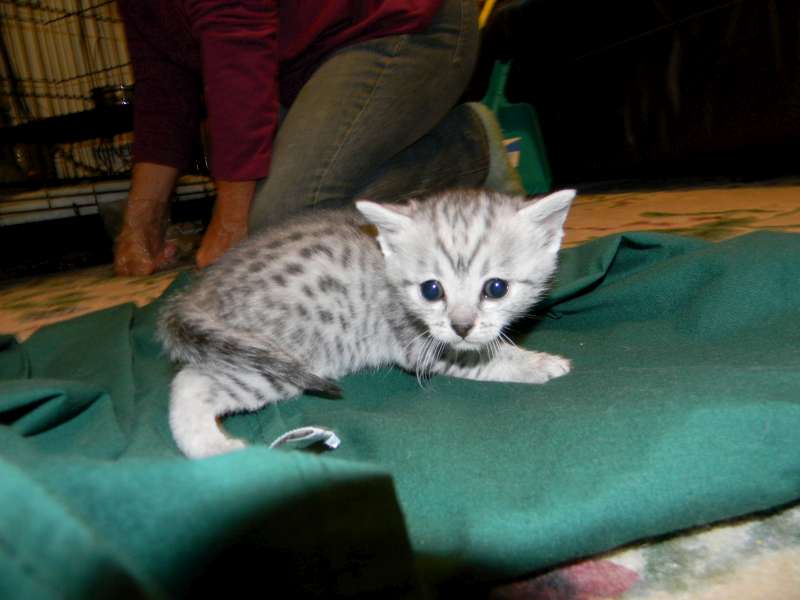 Images tagged "silver-mau" Starting to move around now. Just a week old in this pic. She is developing a really cute personality Trying to get up and go she's still a little young! You can see her black spots clearly in this shot. Penny has a precious little Mau face. What great Mau spots! That face gets prettier every day Penny is growing fast now. There's that precious face again! What a pretty smoke Mau girl. She is just going to be a stunning cat. Sudi is really coming into his own. Busy every minute What a sweet face on this precious silver Mau boy. Exploring. A perfect Mau tail! What a sweet boy This boy is going to be a beautiful adult. Here are a couple of new pictures of Miss Sophia. [Show slideshow]◄ 1 ... 3 4 5 ... 11 ►