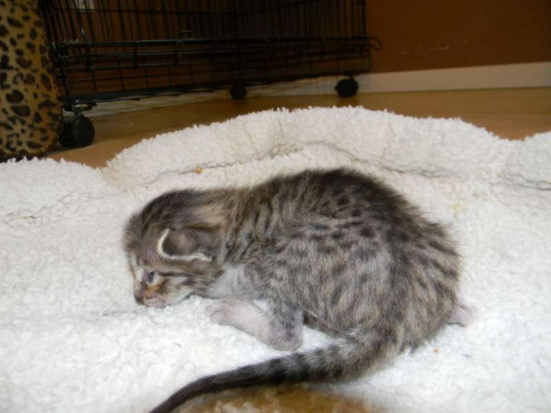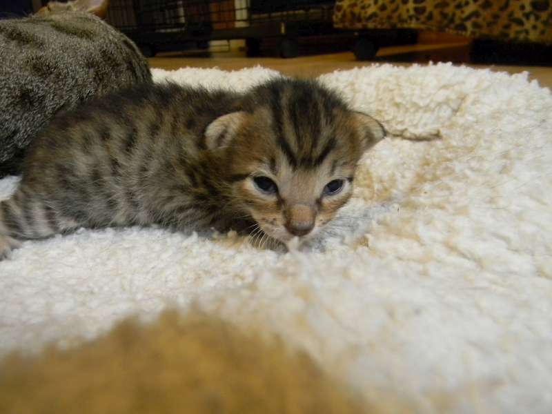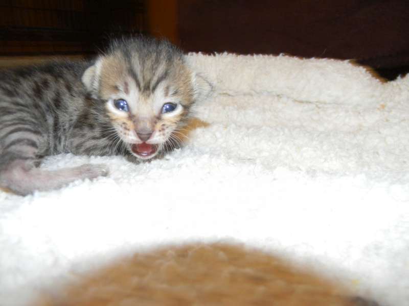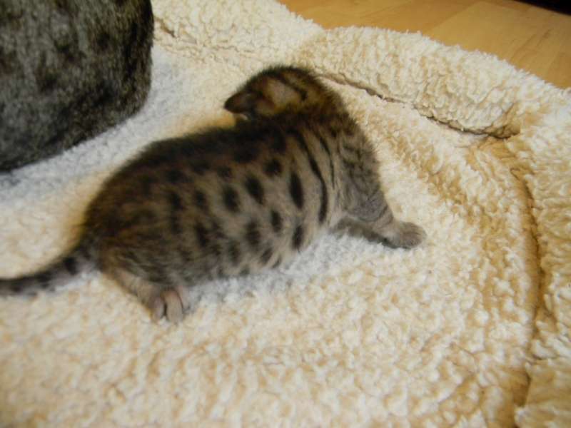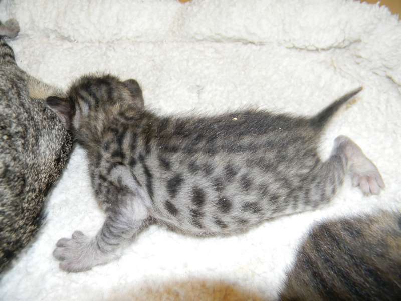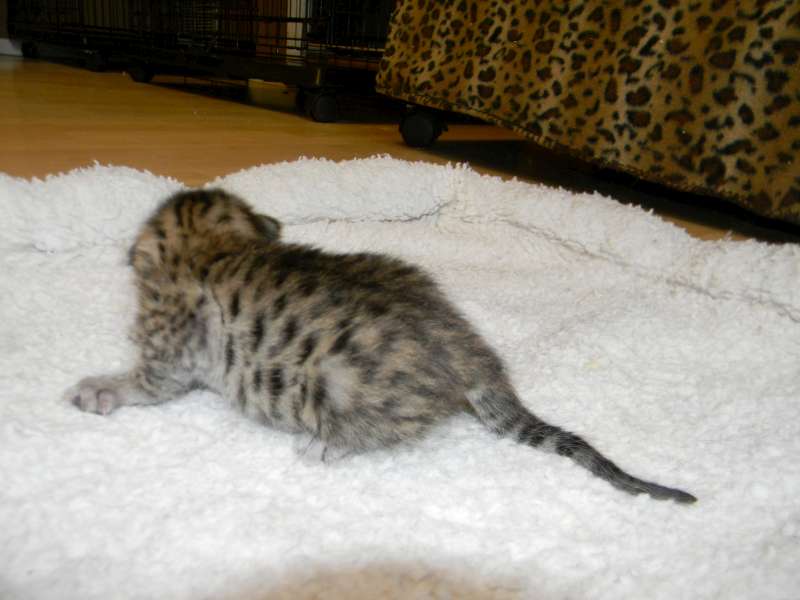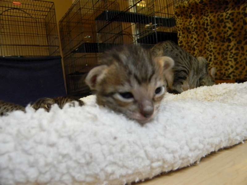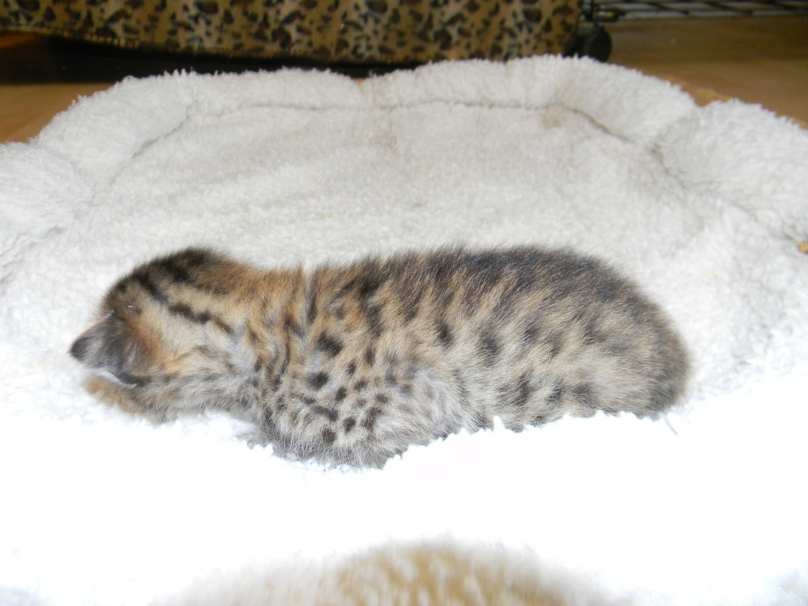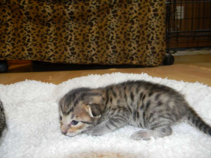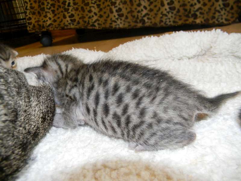 Images tagged "spotted-breeds" The biggest female in the litter this "big girl" will be a very exotic looking adult. With great spots "Big Girl" is available as a pet or with breeding rights. Big girls precious face This girl is almost "orange". If you like tigers you'll love this girl. "Almost orange's spots run in lines giving the appearance of tiger strips. She would be perfect for a Toyer program. This is "oranges" like tiger face. This girl has super "clear spots" Available as a pet or with breeding rights this "clear spots" girl is really something special. "Clear spots" has a precious Savannah spots. This precious boy has a pink nose and super spots. Obviously this "pink nosed" boy will be a stunning adult. Look at that precious Pink nosed face. This black nose Boy #2 is awful pretty and will make a super pet. What great spots on Black nose boy #2 There is that precious little Black nose #2 This is black nose #3 and what a beautiful face. Available as a pet or with breeding rights this guy "black nose #3" has super spots. More of thos perfect savnnah spots on Black nose #3 This guy as super spots and is being fostered By Twinkle a silver mau. Triumph has 8 kittens and winkle had 1 so we gave this guy to Twinkle to raise. [Show slideshow]1 2 ... 12 ►