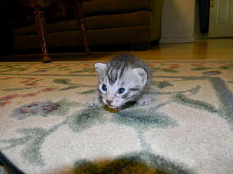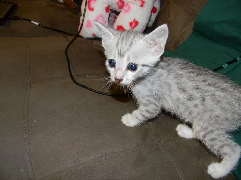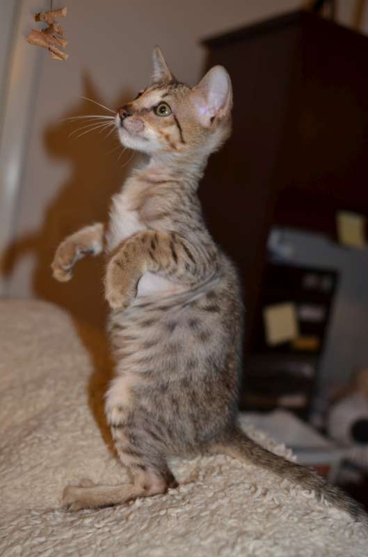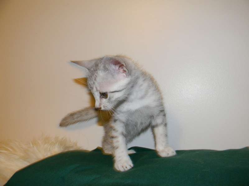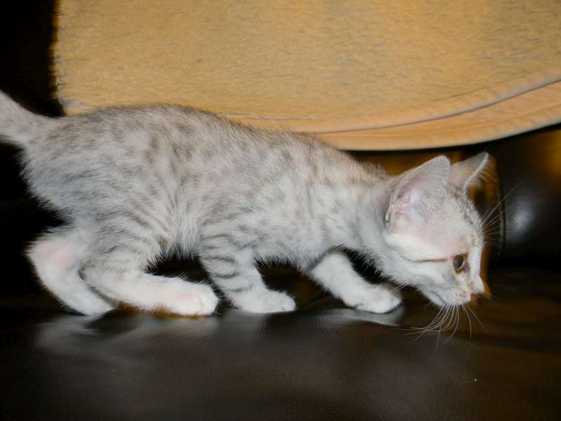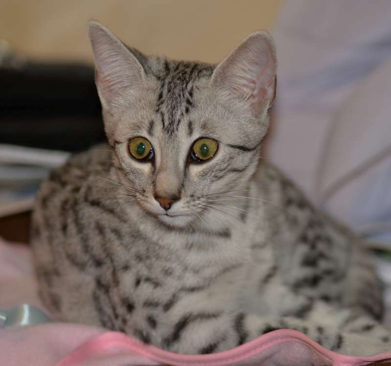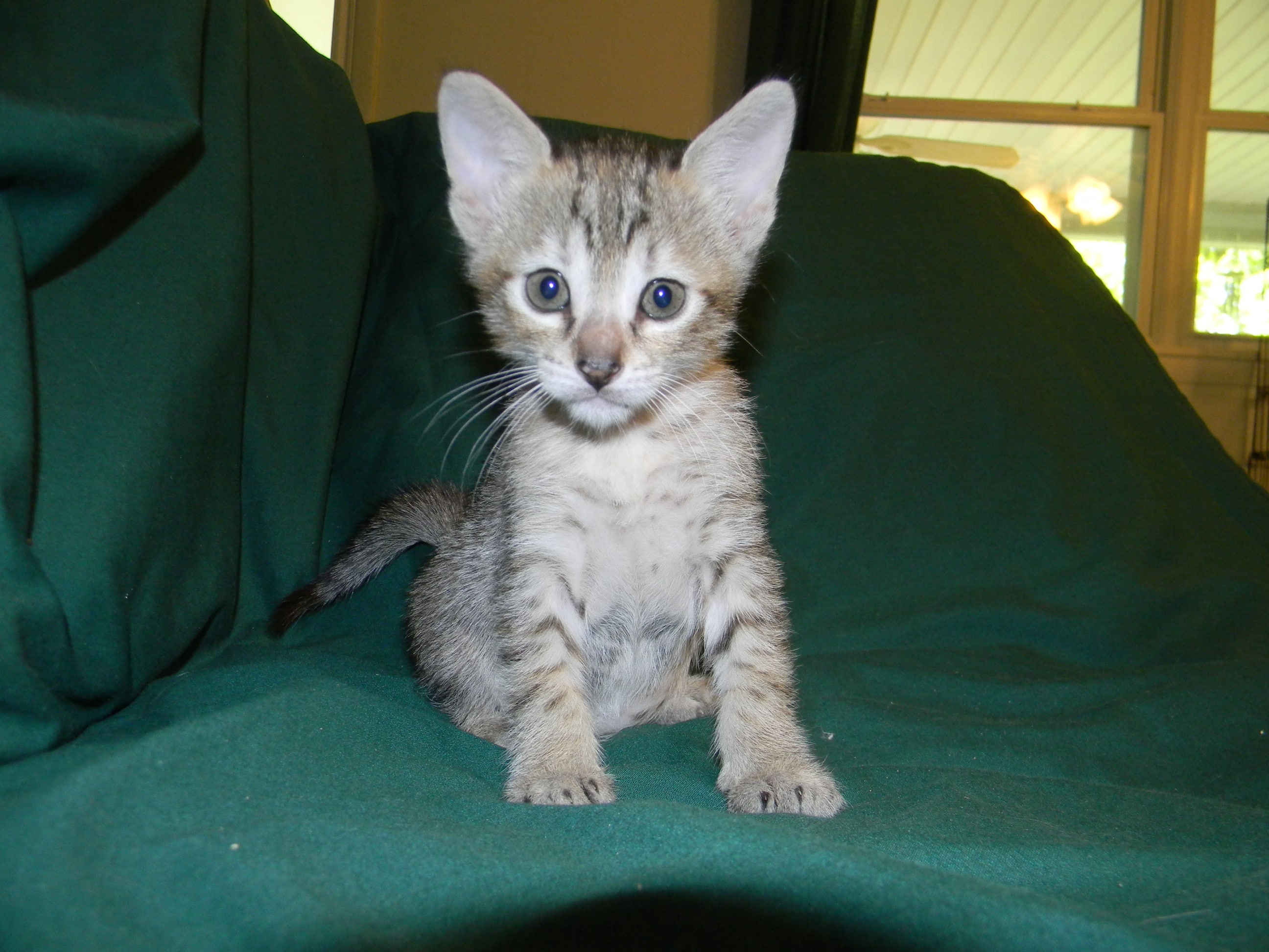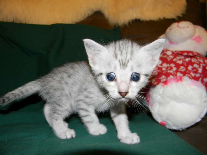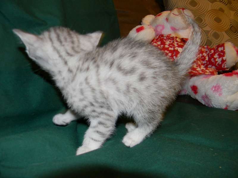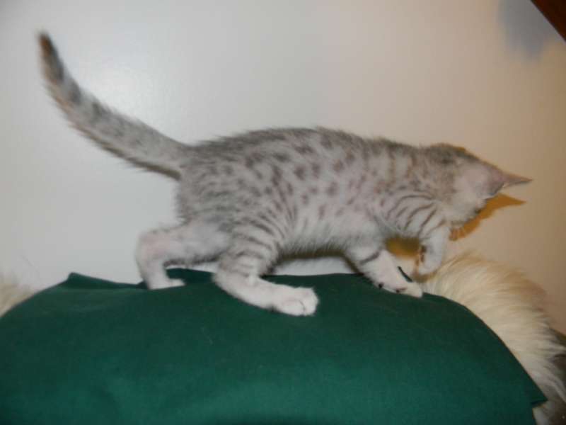 Showing great spots already this Bronze Mau boy is an exceptional nice kitten.