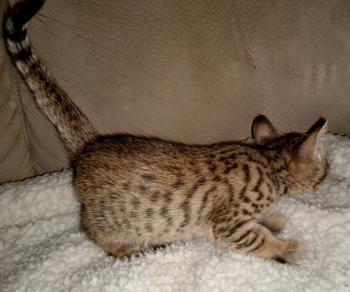 You can see the 2 different colors of coat in this shot of this savannah girl