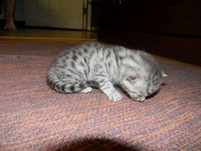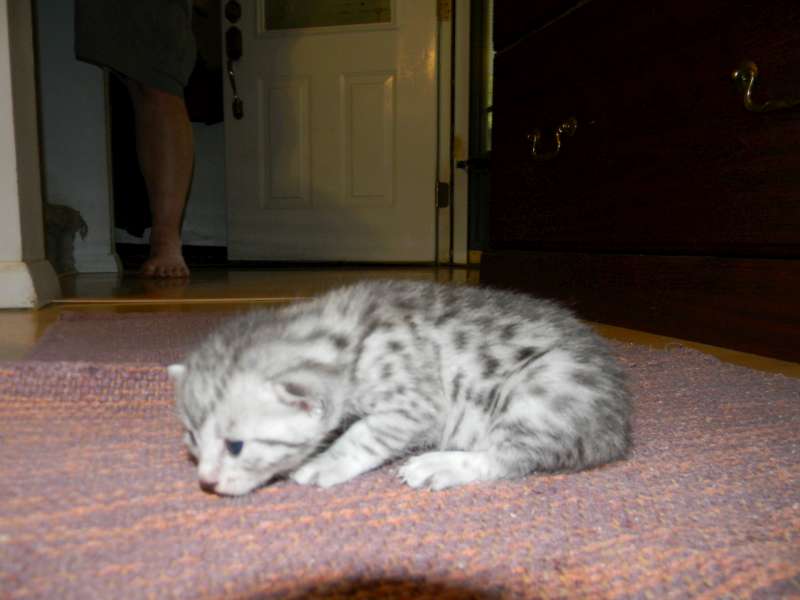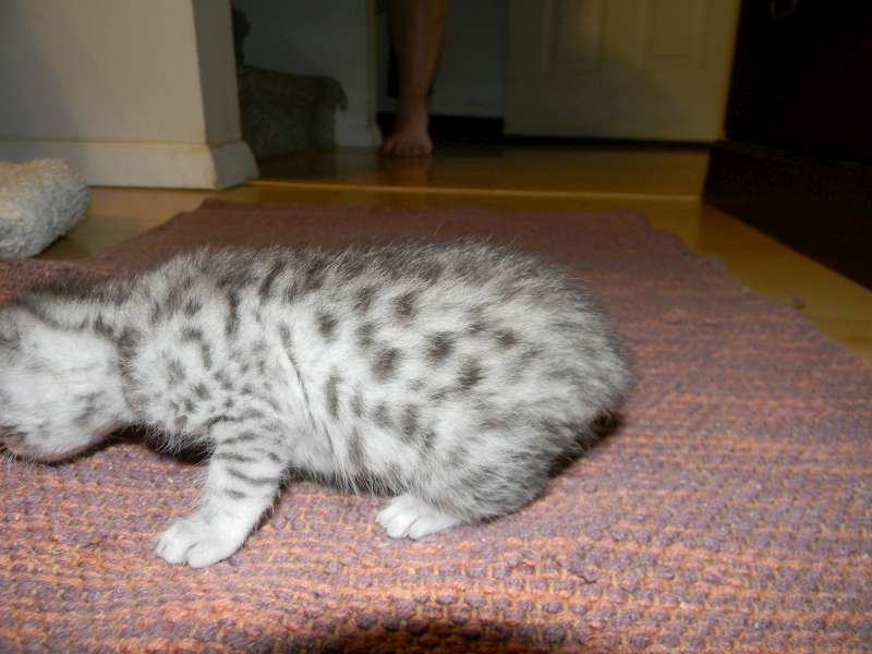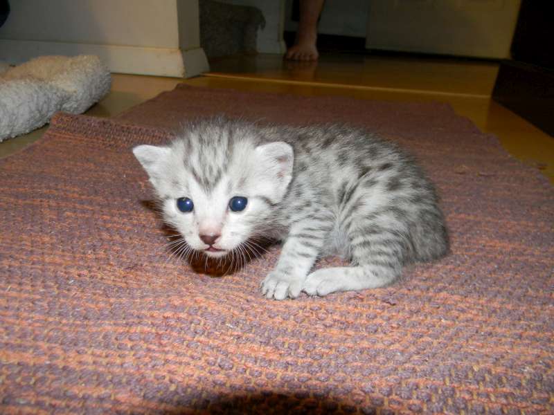 Images tagged "spotted-kitten" Just home with his new parents Kato takes his bottle from Dad Allan What a precious angel! Miggy, silver mau, acts like he has always had this pretty red coat on his first day of harness training Already obviously beautifully spotted. More spots than stars in the sky What an angelic little silver Mau. Little Prince looks the part. Fabulous Spots! Prince is starting to explore [Show slideshow]1 2 ... 11 ►