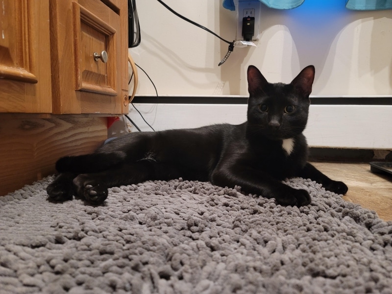 This smoke boy has 2 pretty white lockets, one on his tummy and one on his chest. Like a heart waiting for his family to claim him he will make a fabulous, sweet, exotic and loving companion. He and one of our Belle Hollow Savannahs will be going home to Melissa and family in CT.