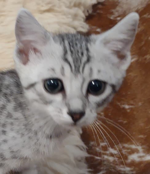Just too precious this F-3C brown spotted girl is her Mom's first kitten. She will grow to become a loving pet and companion for some lucky person or family. Diminutive in size she is a live wire and will keep you laughing for hours. She is going home to Whitley in TN.