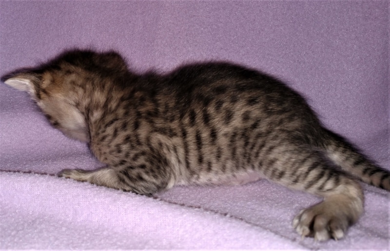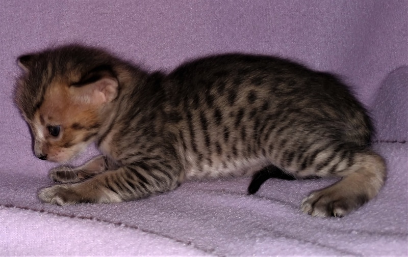 Savannah F-3C Brown Spotted female DOB 3-23-20This girl has superior spots, good size and comes from a very nice bloodline. She will make a superior pet for Timothy and Anna in FL. [Show slideshow]1 2 ►