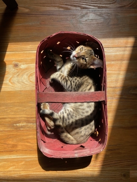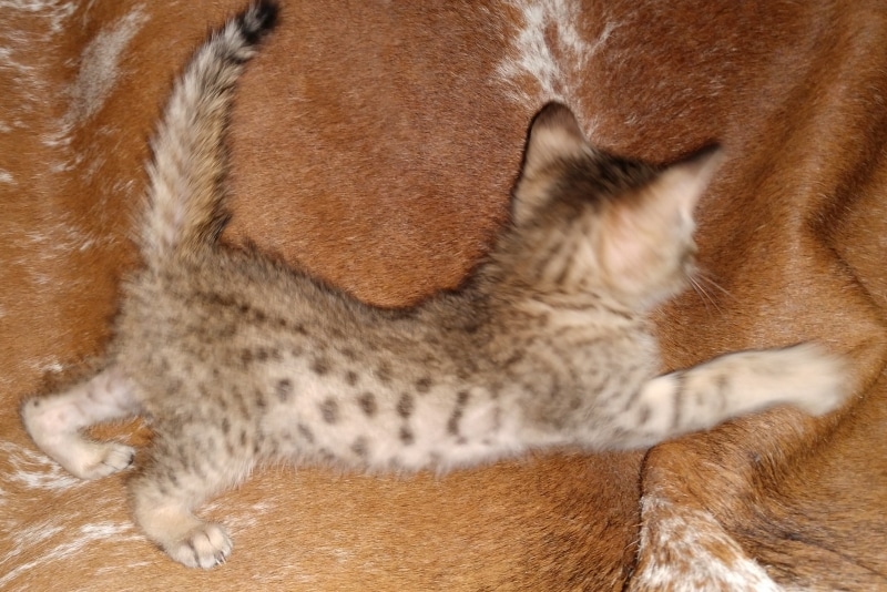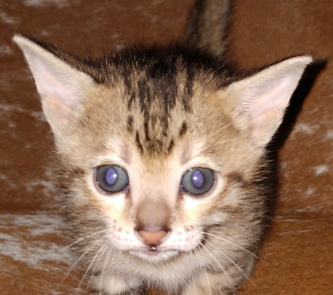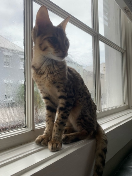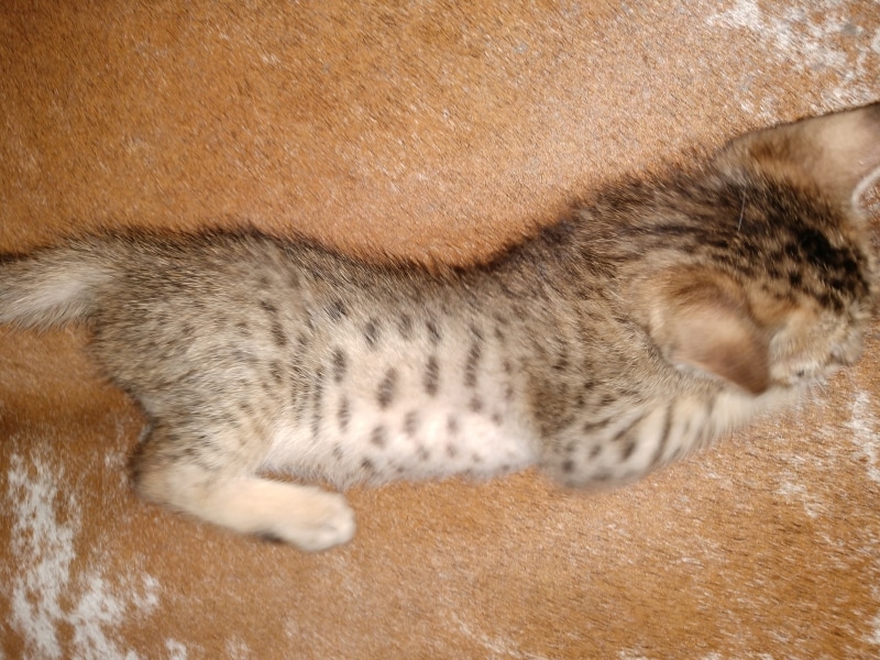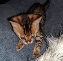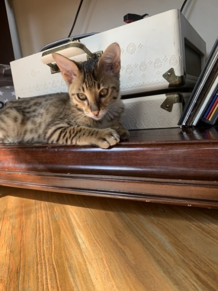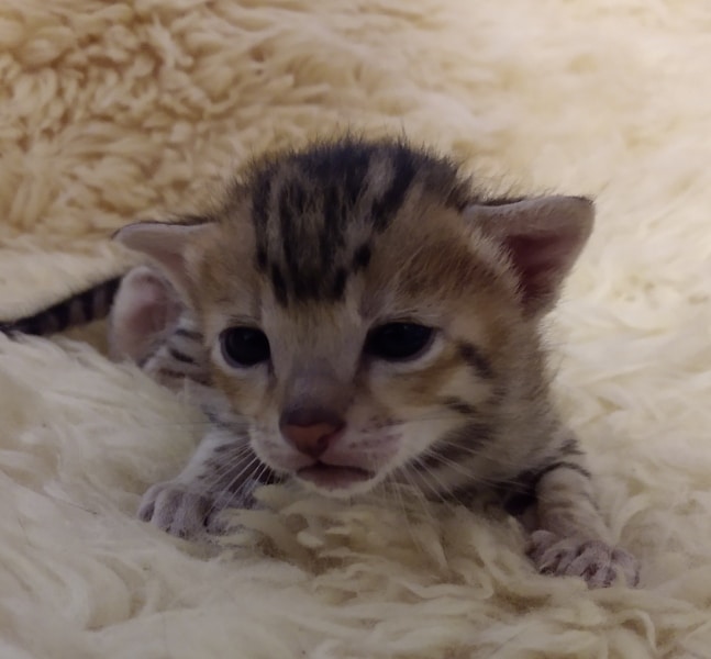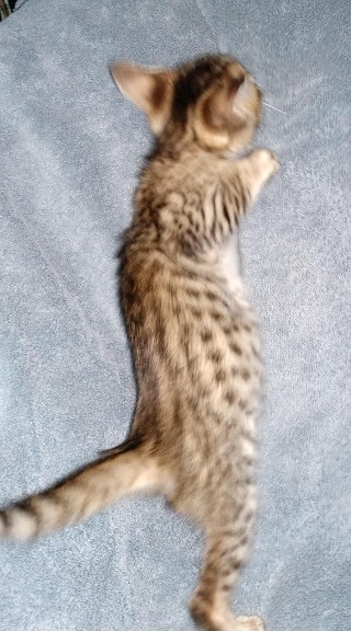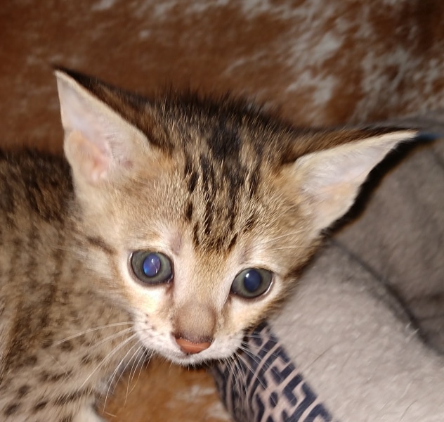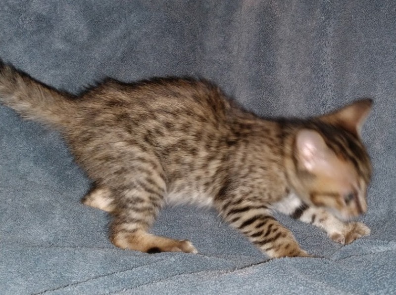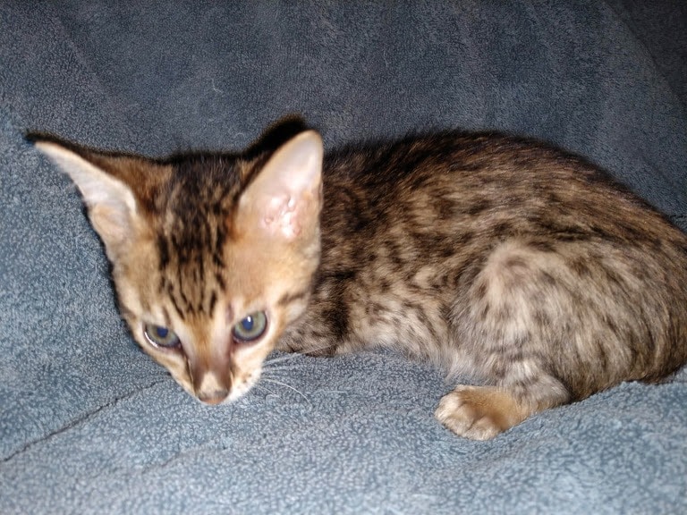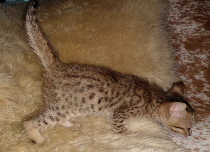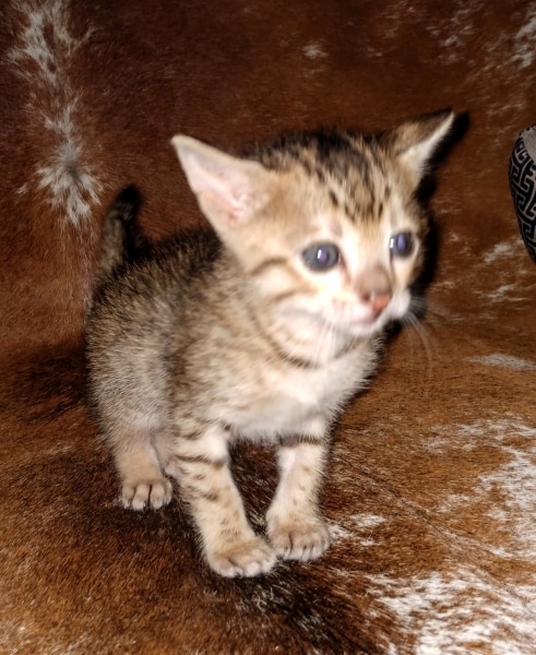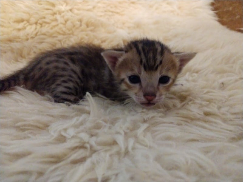 Savannah F-5SBT Male # 2 DOB 7-6-20This sweet Savannah boy will be a lovely adult and exceptional companion. At F-5SBT he is eligible for show in TICA. He will be going home to Patricia in SC [Show slideshow]1 2 ►