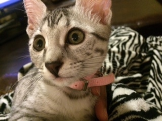This beautiful little Egyptian Mau girl will be going to live with Tenisha in NC where she will be a cherished pets and family member.