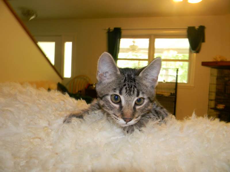 I just thought we would up date you on the kitten we got from you last year he is doing great a fun and loving guy mom thinks he is just great, he follows her everywhere the wheel chair can go.