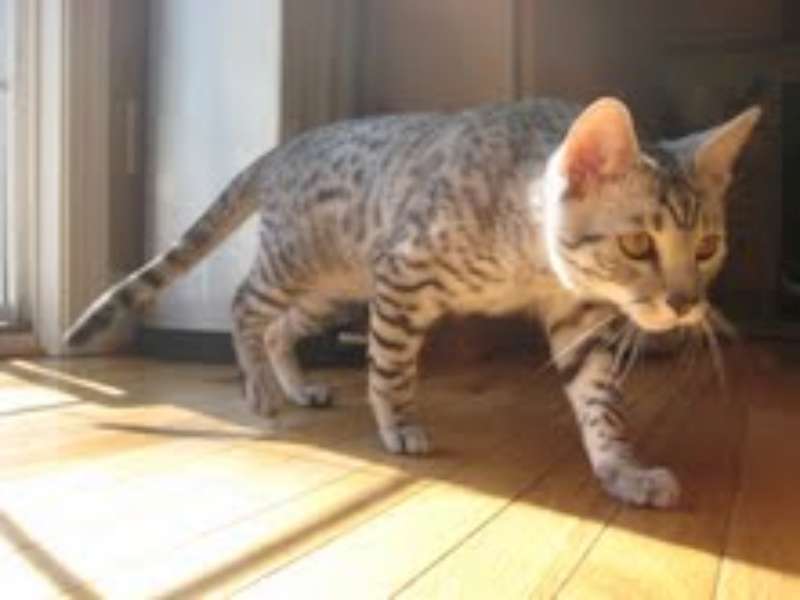 Starting to explore now Cairo, silver male Egyptain Mau will be a wonderful addition to Michael and Kelly's home