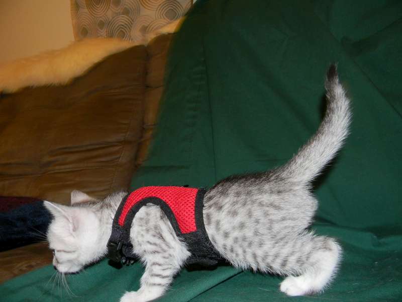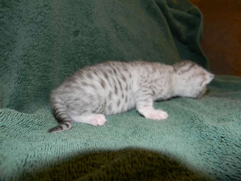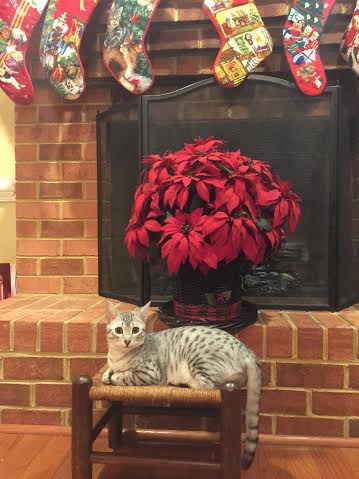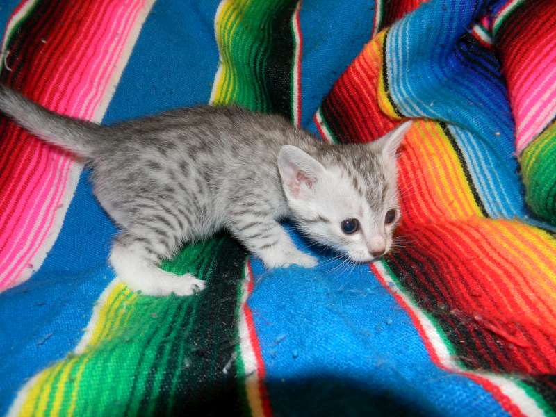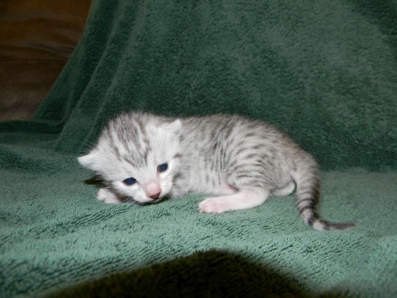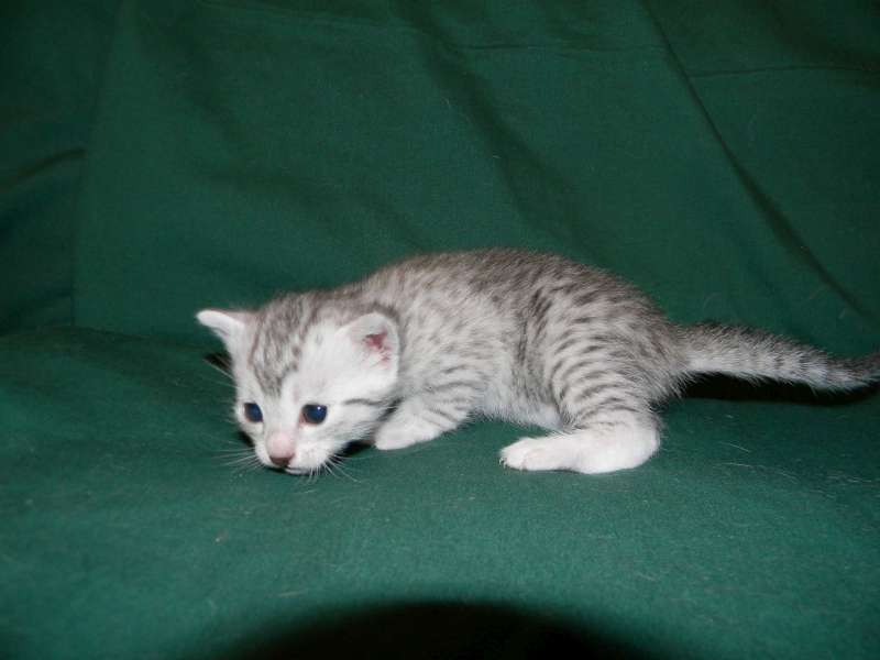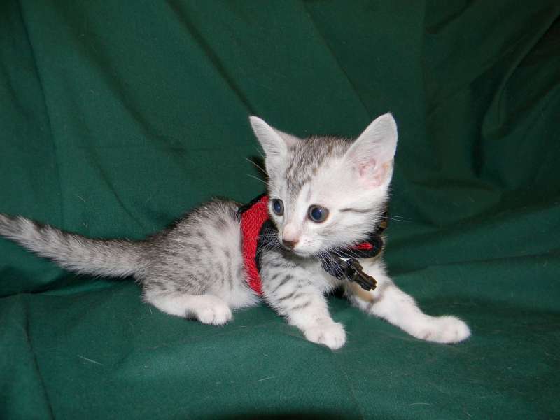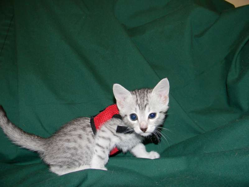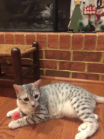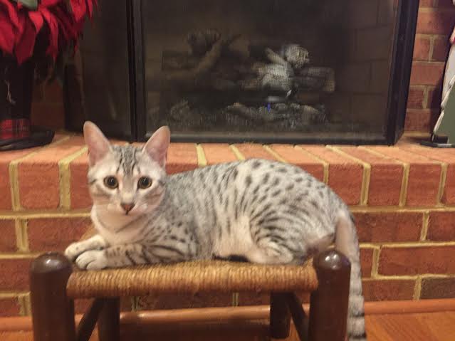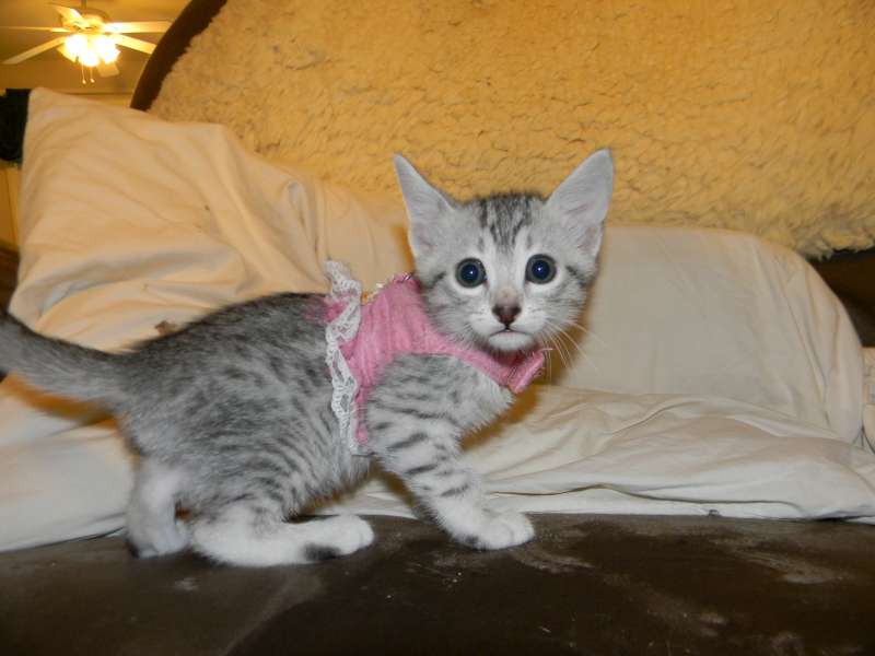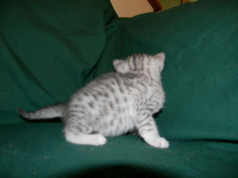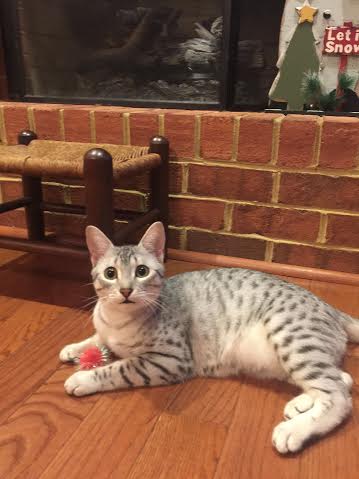 Chloe Silver Egyptian Mau Female DOB 4/2/15Chloe, a stunning little silver Egyptian Mau girl will be going home to Melissa and Mike in VA. Sooo Tiny now she will be a beautiful girl. Another little Egyptian Mau Angel Showing her lovely Mau spots. Starting to get around a little now. What a beautiful little Mau girl. This Mau girl has great spots. Little Miss Mischief! Busy little angel! Beautiful Mau kitten face. Merry Christmas From Chloe She is so beautiful I got a better one! [Show slideshow]