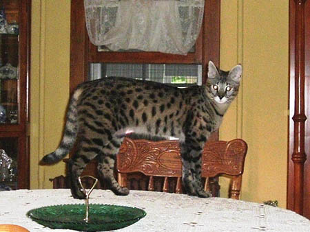 F-1 Savannah Dafiana is the heart and soul of early Generation Savannah Cats. We are so proud of her. Thank you Linda of Kemple's Cats for sharing these pictures for all to enjoy!
