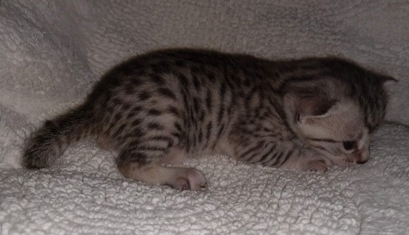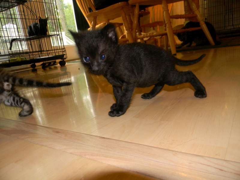 Dracarys (Drogo) F-2B Black on Black Male DOB 9-8-14This beautiful girl is a very dark smoke. She is from Pearl and Truffles.We have retained her for our own breeding program. Just a brand new baby in this shot. Up and moving you can see her black spots on his black coat. Too busy to stop for pictures. Movin on down the road, Miss Buzz ball has a huge Purr. Just opening her eyes here. getting around now. What a cuddler! Prettier everyday this girl has classic Savannah form. This girl has everything you want to see in savannah standard. Ebony, F-2B Savannah female, will stay here at Belle Hollow Dark Smoke/near black you can still see her ghost spots. [Show slideshow]