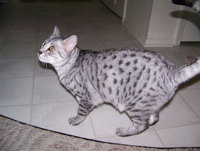 Dusty – Egyptian Mau SilverDusty - Male Mau DOB 8/7/08 Dusty was my mothers persoanl pet until she passed away. Now he shares Stan and my bed. Shown here at 16 months Dusty is our personal pet and shares our home and bed. [Show slideshow]