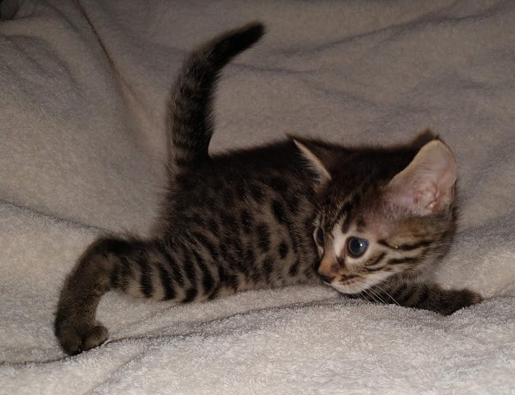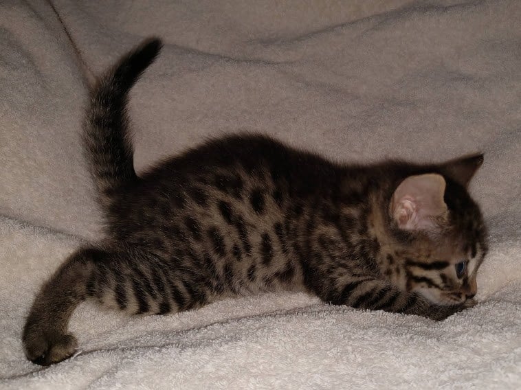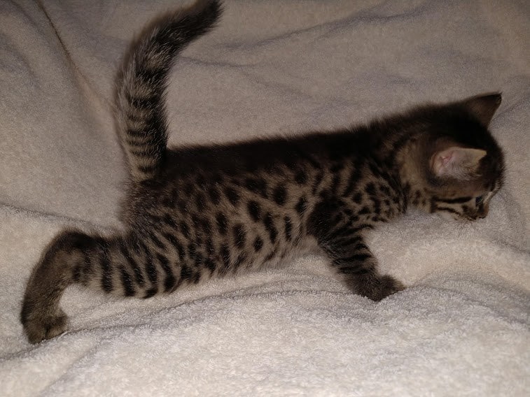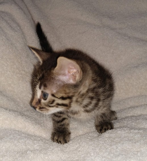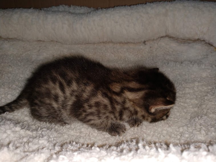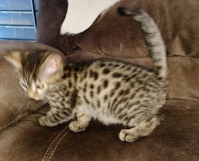This beautiful Bronze Mau boy will make a super pet. From Layla and Van we don't see a lot of Bronze kittens even though Layla is a bronze. He will be going home with Jemond and Keyna in TN UPDATE This boy was visited by the "sex change fairy" and is in fact a beautiful GIRL!