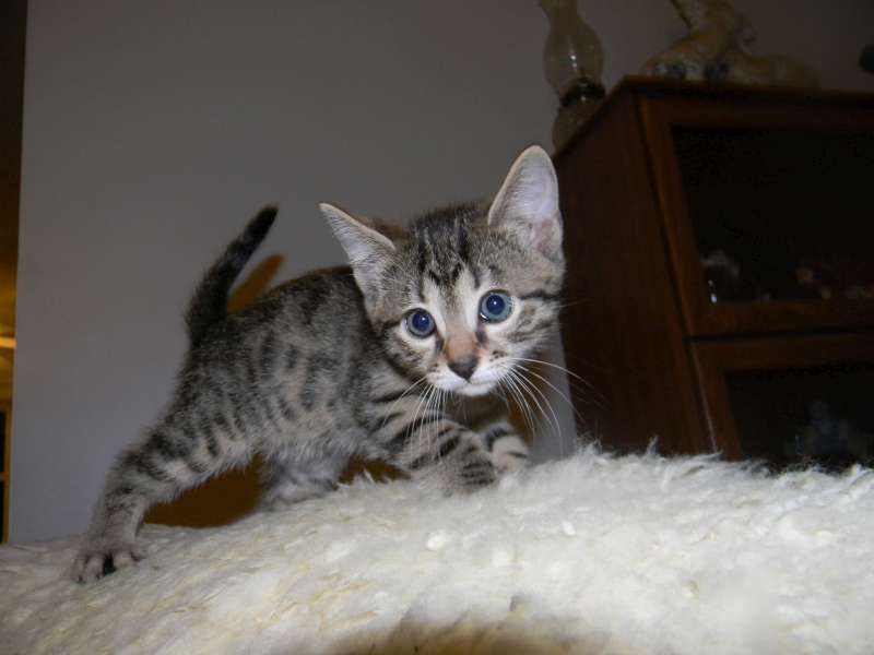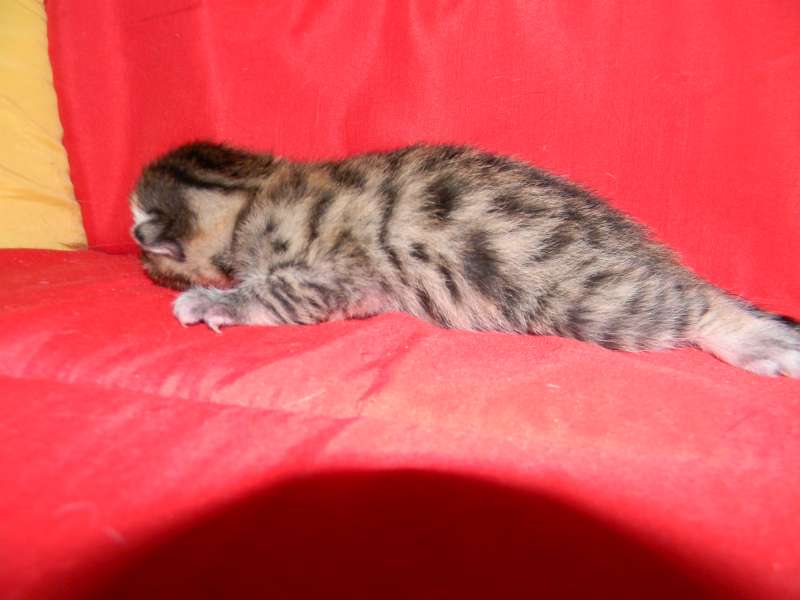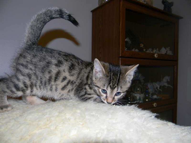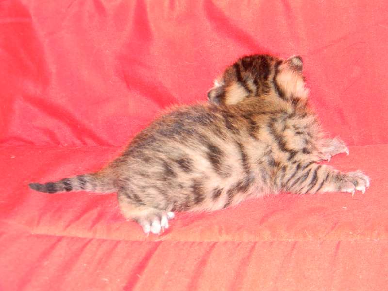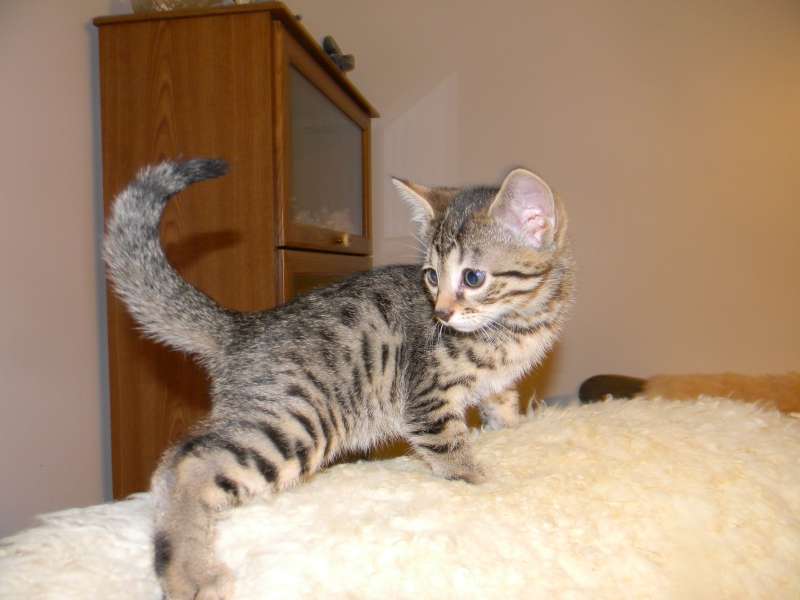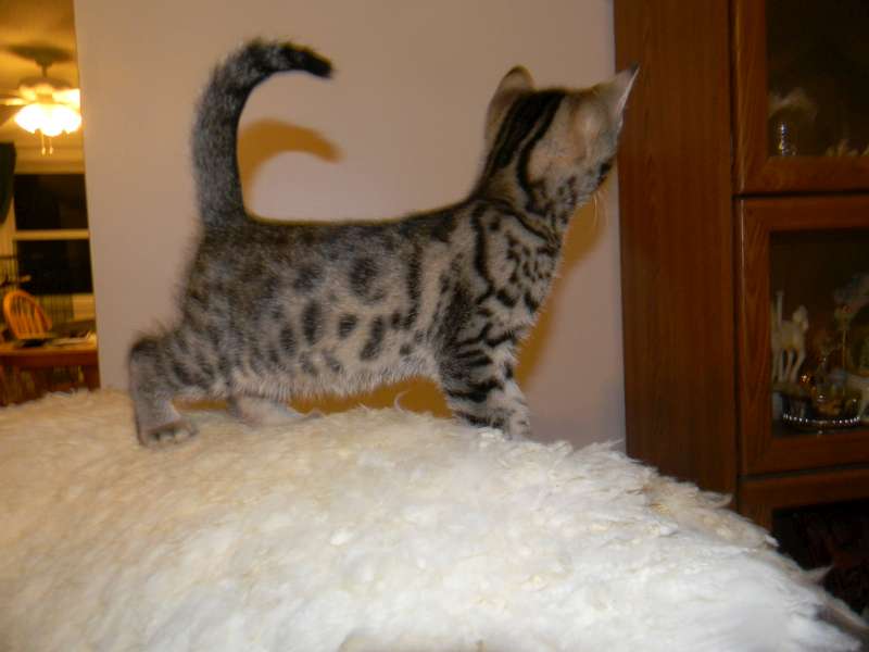 This little Egyptian Mau boy has the biggest black spots and will a stunning adult. This guy is so unusual and he will be going home with Mary in January.