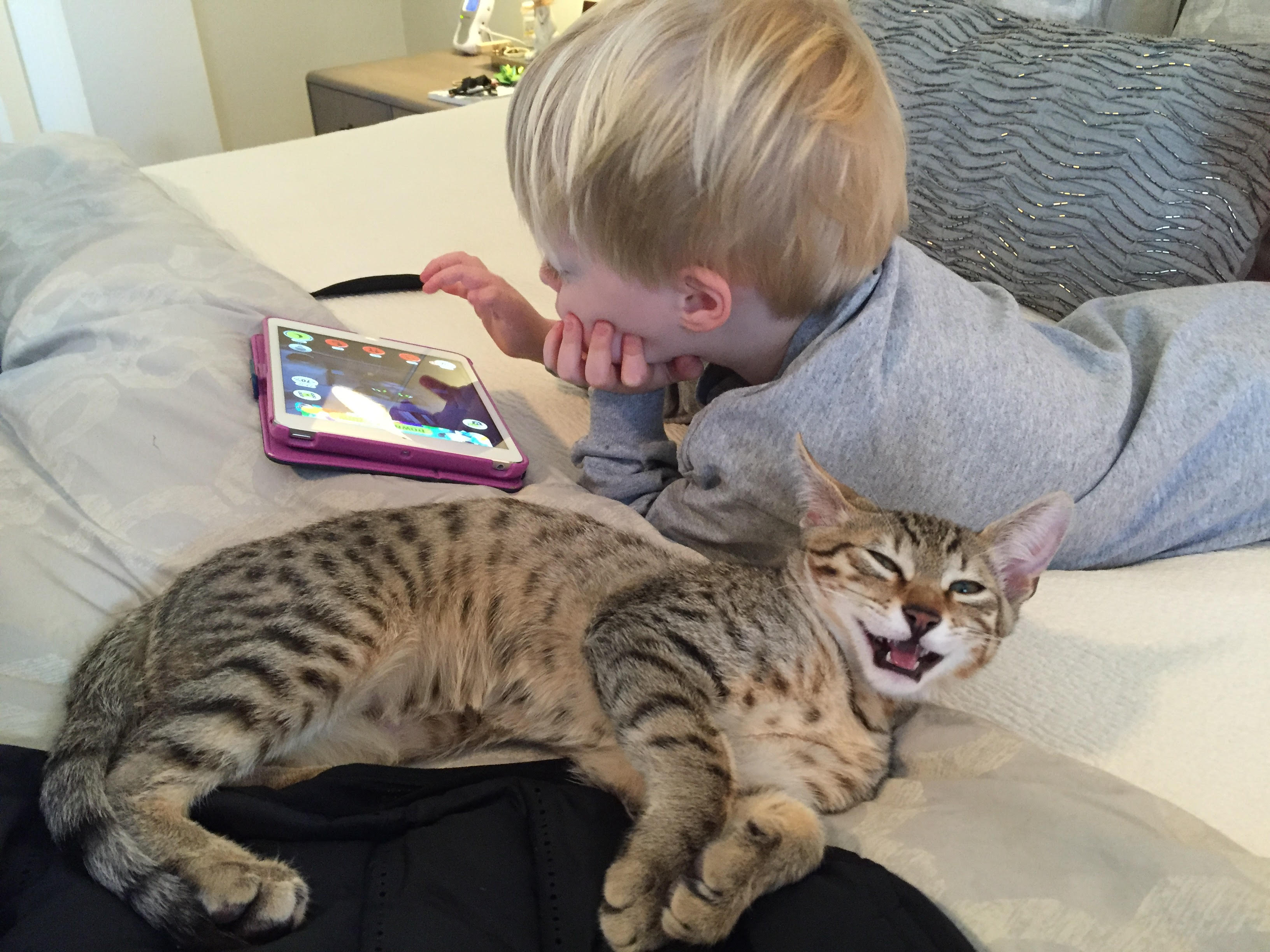 Egyptian Mau Bronze Male DOB 9-27-15 JeremyThis beautiful Bronze Mau boy will be going home to Jeremy and Jennifer in CO. He now has a sister Luna, also a belle Hollow Mau but silver.. Oz fits right in! He seems to be comfortable with everyone in the family, including his 110 lb Ridgeback brother. [Show slideshow]1 2 ►