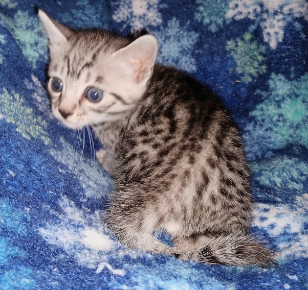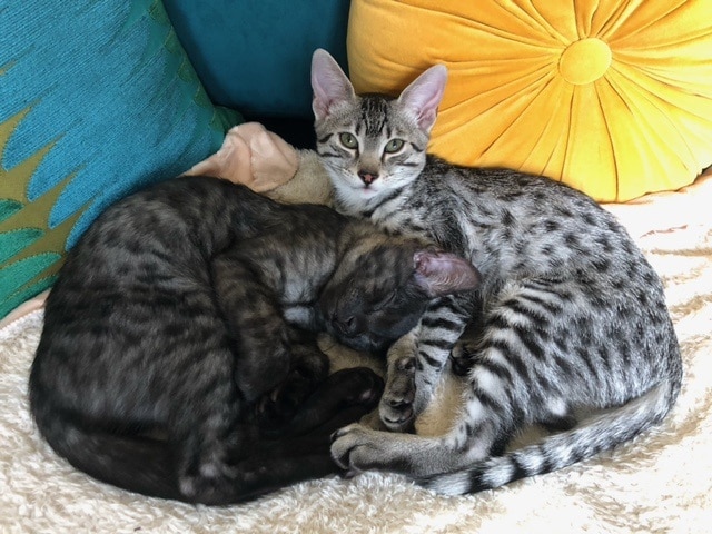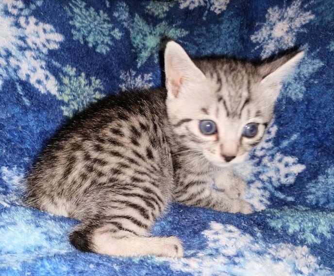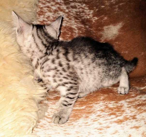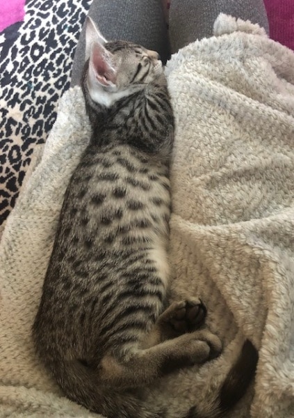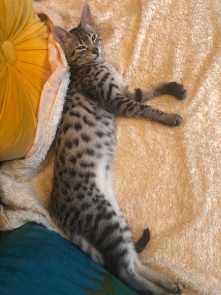 This sweet girl will be going home to Ingrid, her husband and their daughter who is a natural "Cat Whisperer" in NC. They are former Mau owners.