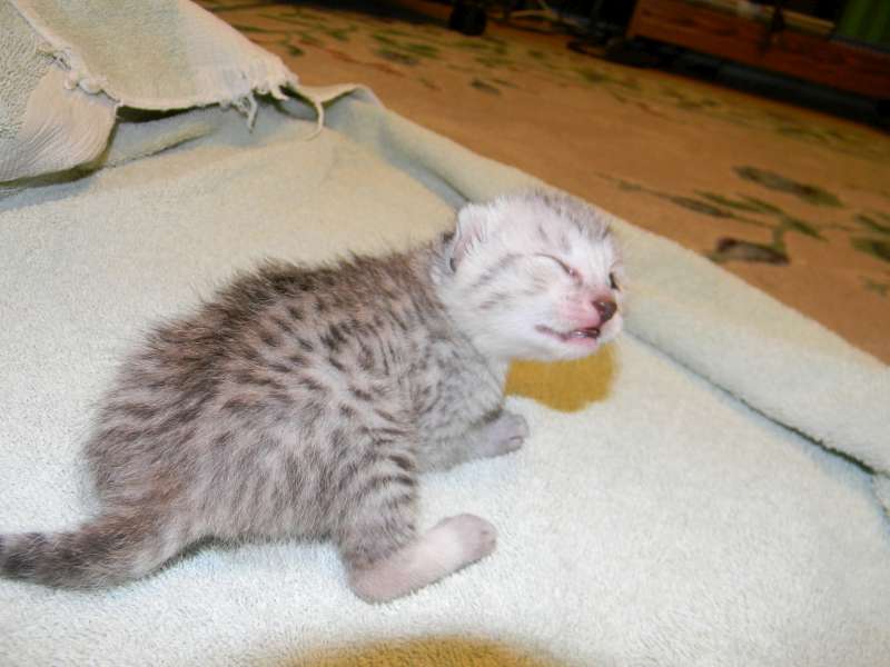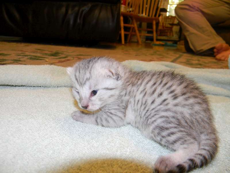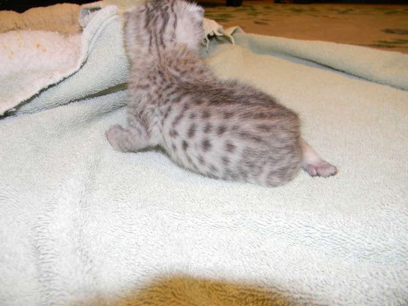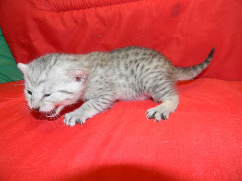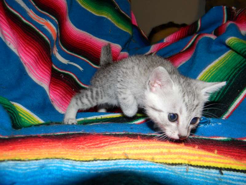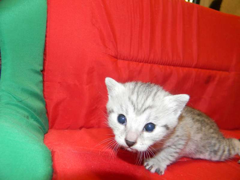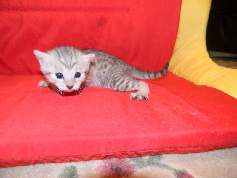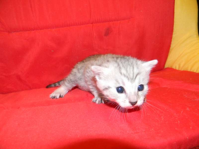 Egyptian Mau Silver female Lightest DOB 9-27-15This stunning Mau girl has a pale silver coat and more spots than stars in the sky. Sure to make a super pet and beautiful adult cat for Melissa and Linda in NY. [Show slideshow]