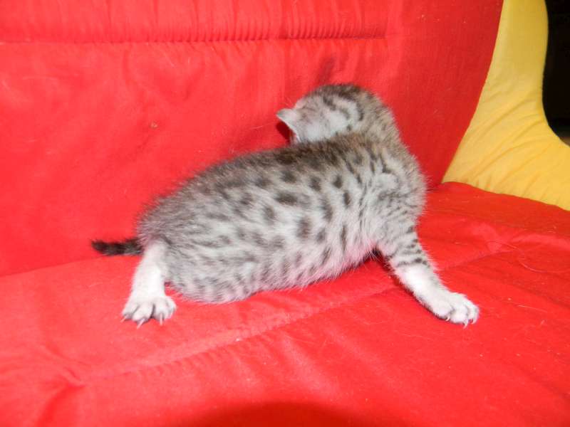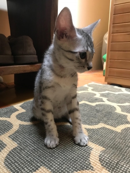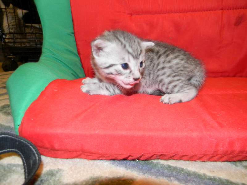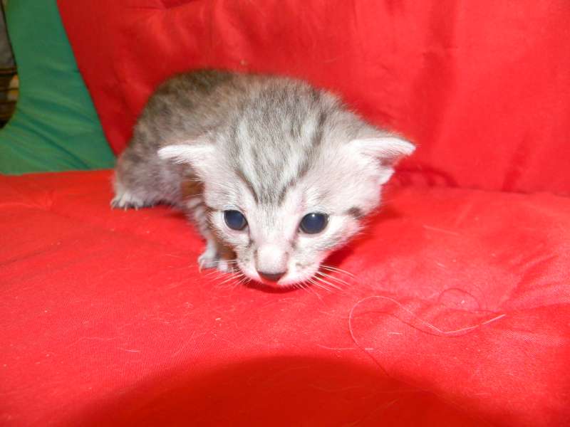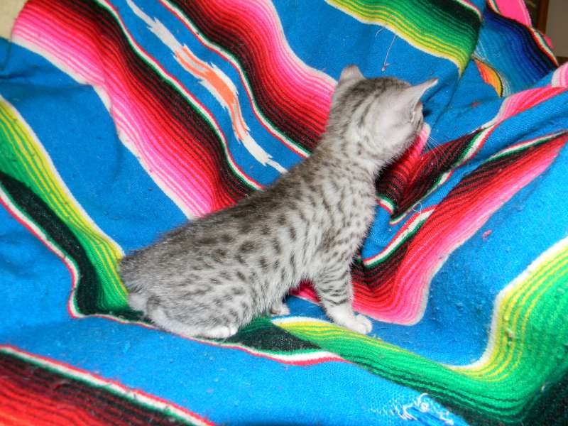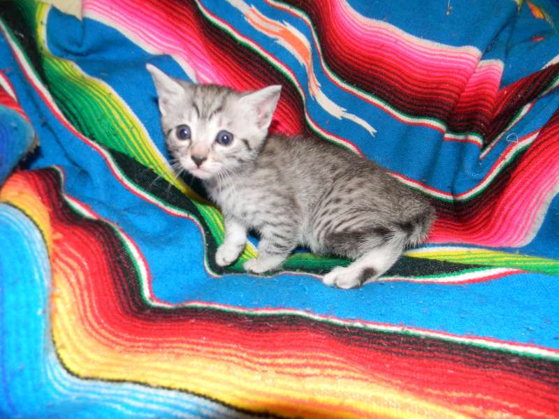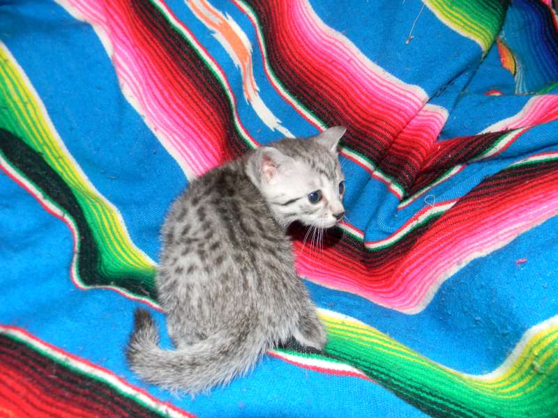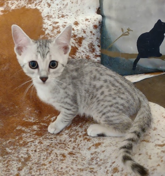 Egyptian Mau Silver Female Medium DOB 9-27-15This beautiful Mau girl is medium in color with great spots and will be a stunning cat and super pet. She will make a shining silver star for Linda and Melissa's in NY's Christmas Tree! [Show slideshow]