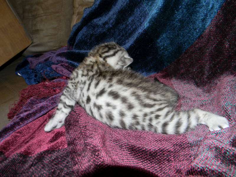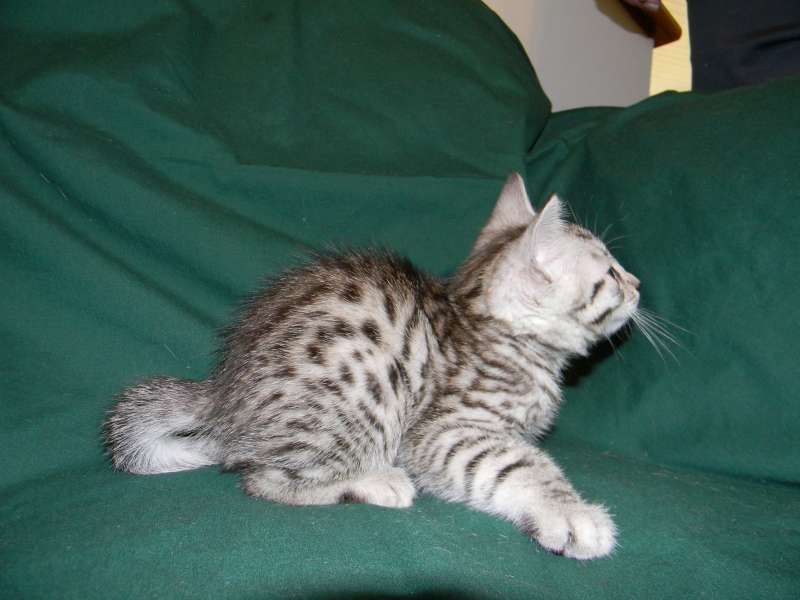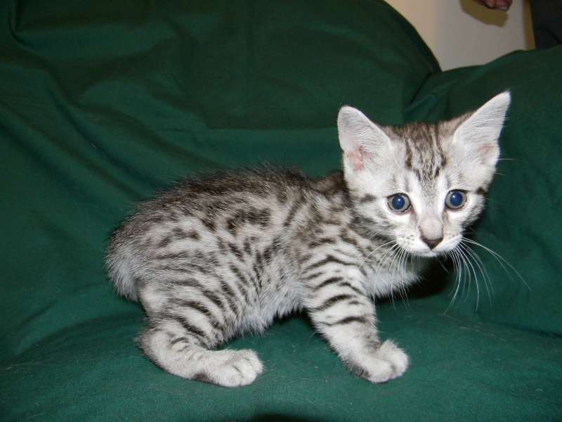 Egyptian Mau silver male #2 DOB 3-8-15This beautiful silver boy will be going home to Lyn and Jim and their Birman kitten. This little silver boy sports really large spots Trying so hard to get around here at just 10 days old. This boy has huge spots and a super clear coat. Who can resist this precious Egyptian Mau face. This little guy have HUGE SPOTS!!! His spots would be the envy of most Hybrid kittens. What a face! What a great expression. This Egyptian Mau boy is scrumptious! This little Mau guy is simply stunning Getting more mischievous everyday. Won't be long until this little Egyptian Mau Boy goes home Super SEgyptian Mau, Silver Male DOB 3-8-15pots on this Egyptian Mau Boy. [Show slideshow]