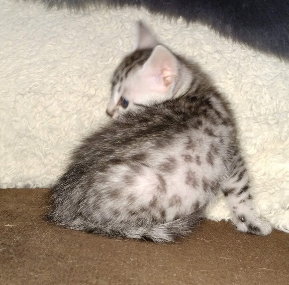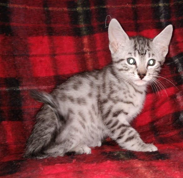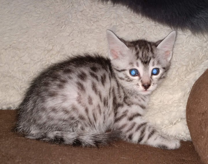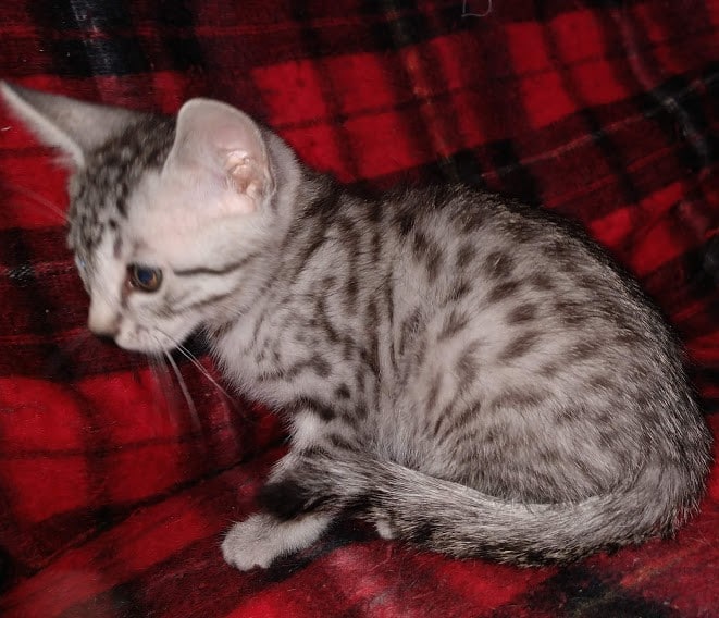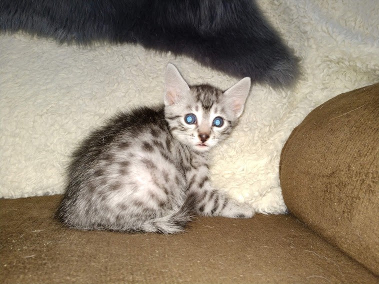 Egyptian Mau Silver Male DOB 3-3-21This beautiful Mau boy has great contrast and will be a stunning a loving companion for Connie. [Show slideshow]1 2 ►