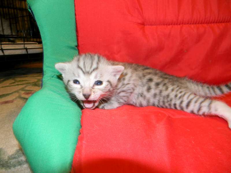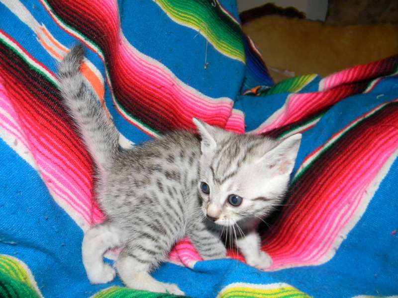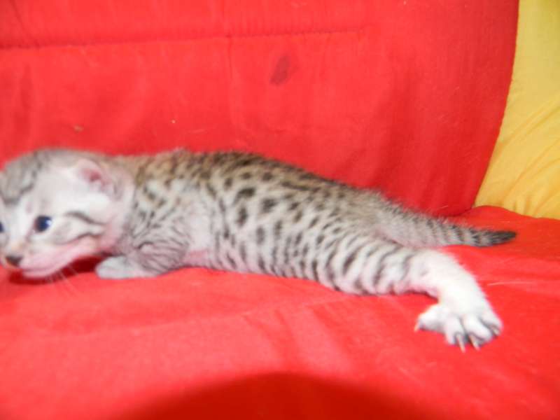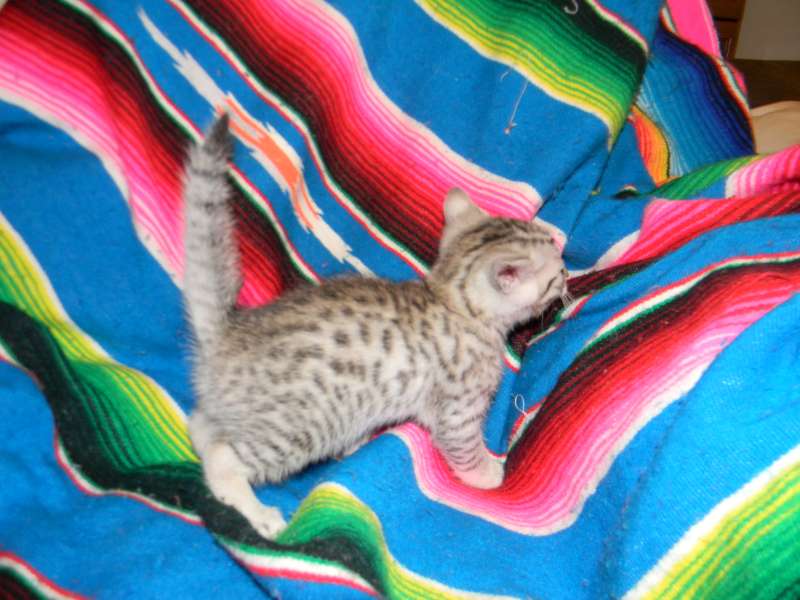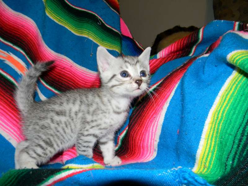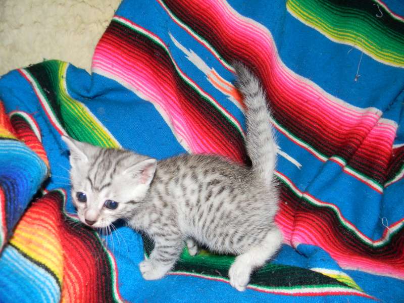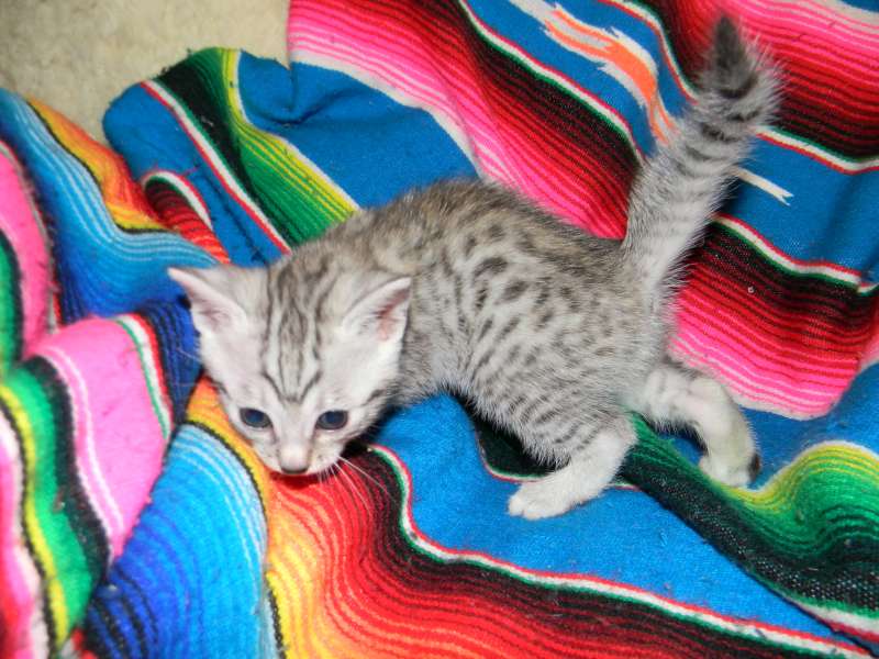 Egyptian Mau Silver Male DOB 9-27-15This beautiful Mau by is the largest of his litter. Sporting big bold spots he will be a stunning pet and loving companion. and will be going home to Travis in NY. [Show slideshow]1 2 ►