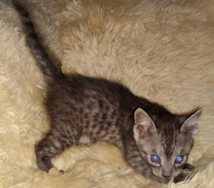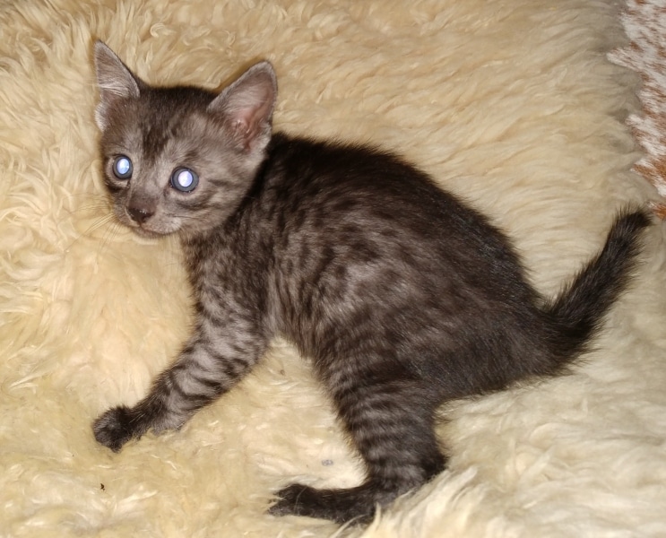 Egyptian Mau, Smoke, Female #1 DOB 8-9-20This beautiful Smoke girl will be going home to Nicole and family who have awaited her arrival for a year or more. [Show slideshow]