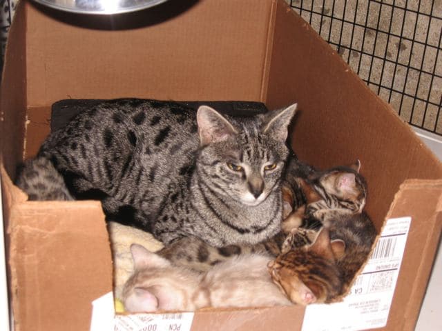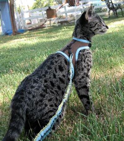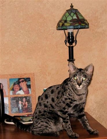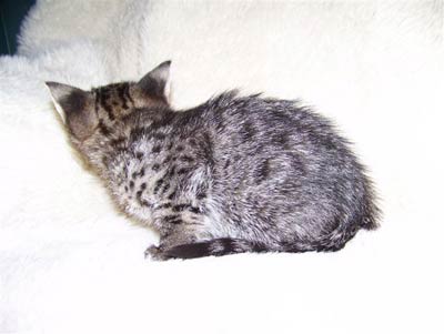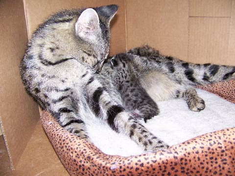 (formerly known as Mimi) F-2 Savannah Female born 4/20/08 from Pearl and Merit has gone to her new breeding home in Northern California with Bonnie who hopes to produce more high quality Savannah's. We will keep you posted!
