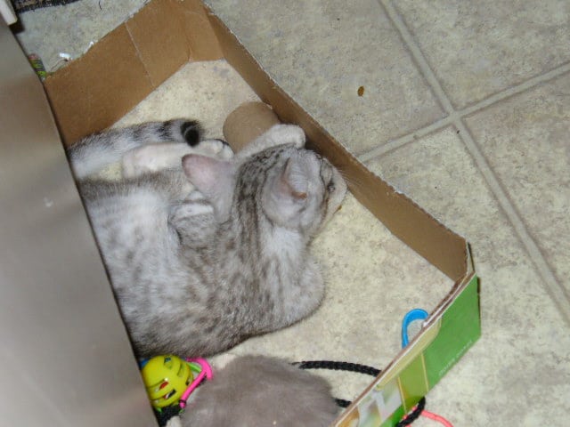 Trying to get a picture of this kitten is like trying to focus the camera on a rocket blasting off. I got a couple of decent ones last night and here they are